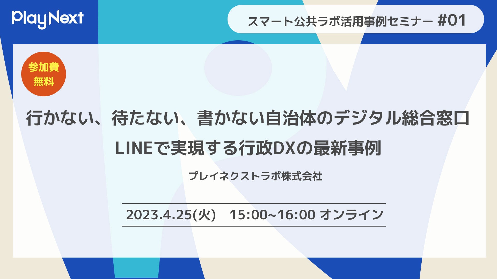 プレイネクストラボ株式会社(本社:東京都品川区、代表取締役:柏 匠、以下 プレイネクストラボ)は、「スマート公共ラボ」で提供している最新の行政DX事例を紹介する無料セミナーを4月25日(火)に開催することにいたしました。