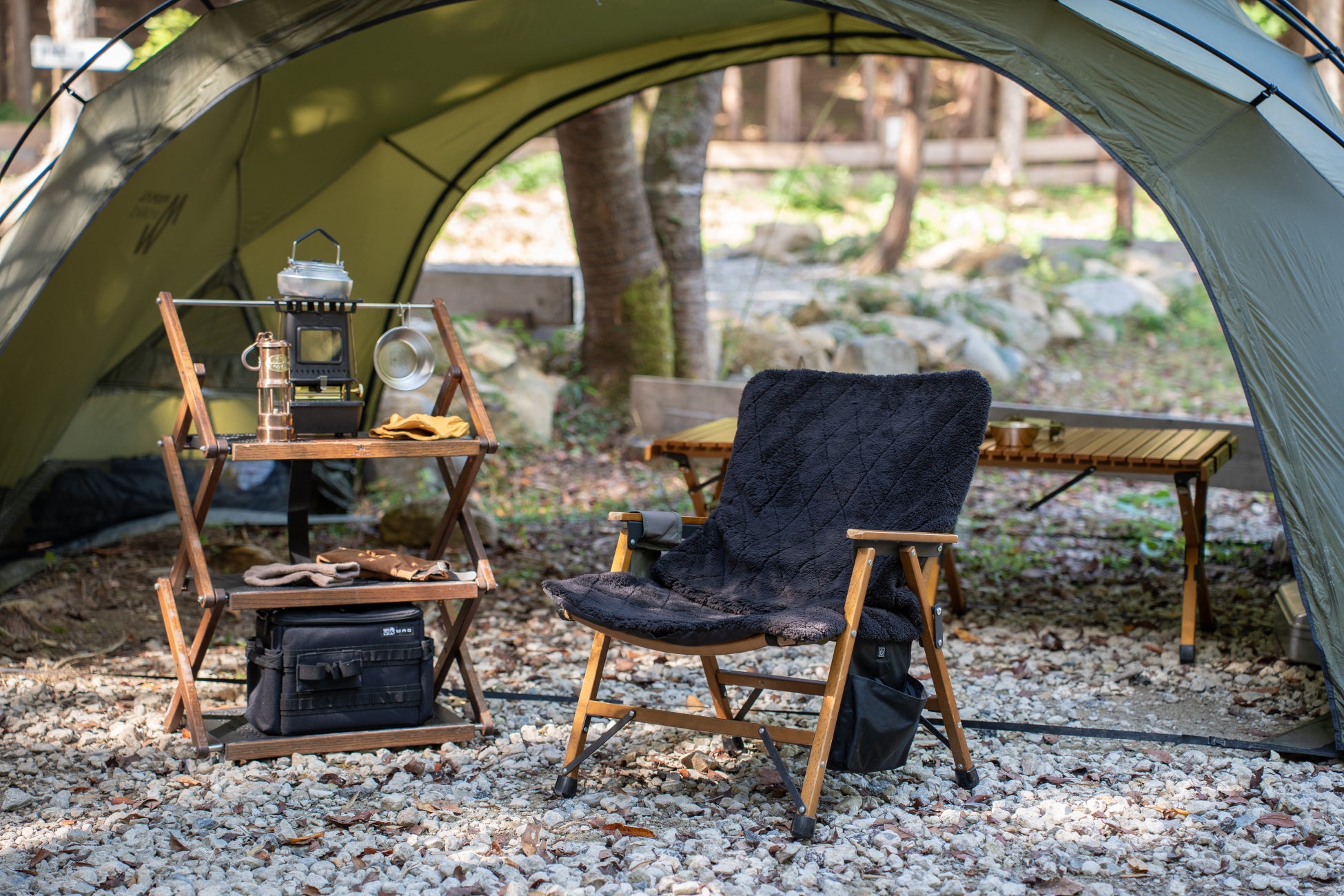 本製品は、WAQリクライニングローチェアにフィットする専用設計の電熱ヒートカバーで、3段階の温度調整(強・中・弱)とUSB給電方式を採用。使用するモバイルバッテリーを接続するだけで、チェア全体を心地よく温めることができます。表地には肌触りの良いボア素材、裏地にはマットタフタを採用し、熱を効率よく保持。寒冷時のキャンプ、夜間の焚き火シーン、早朝の作業など、幅広いシーンで活躍する製品です。