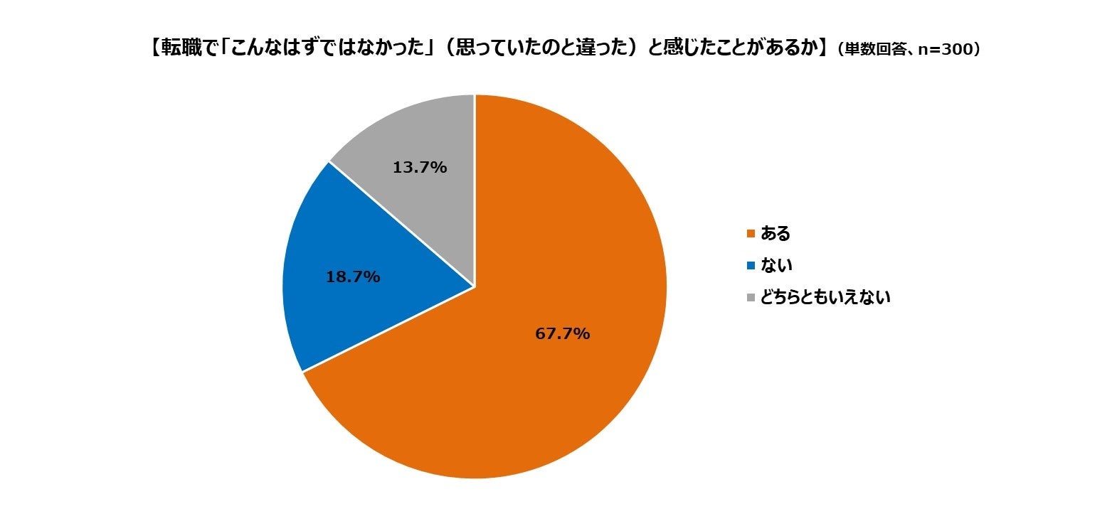 ・転職後「こんなはずではなかった」と感じたことがある人 約7割