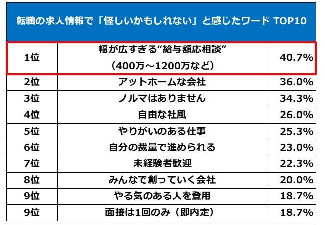 ・「怪しいかもしれない」と感じた転職求人情報の言葉…「幅が広すぎる“給与額応相談”」「アットホームな会社」「ノルマなし」