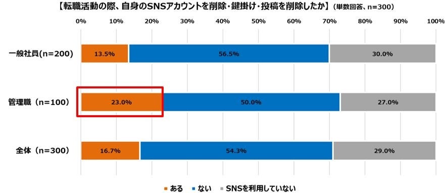Q9. 転職活動の際、採用担当者に見られるかもしれないと思い自分のSNSアカウント削除・鍵掛け・不都合な投稿削除などをしたことがありますか。(単数回答、n=300)
