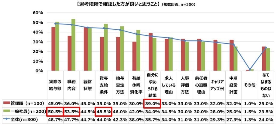 ・選考段階で確認した方がいいと思うこと「実際の給与額」「職務内容」「経営状態」
