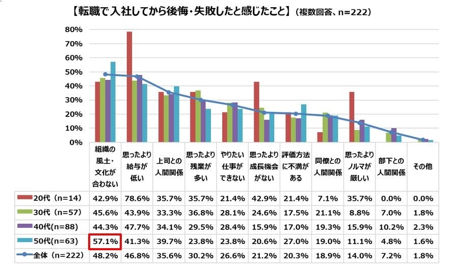 Q2. これまでに転職で入社してから後悔・失敗したと感じたことをお答えください。(複数回答、n=222)
