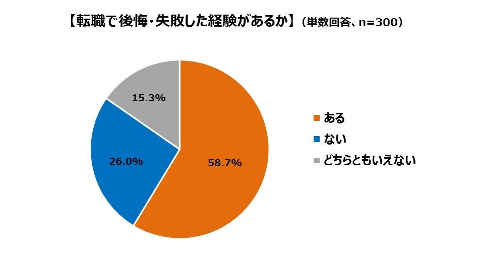 Q1. あなたはこれまでに転職で後悔・失敗した経験がありますか。(単数回答、n=300)