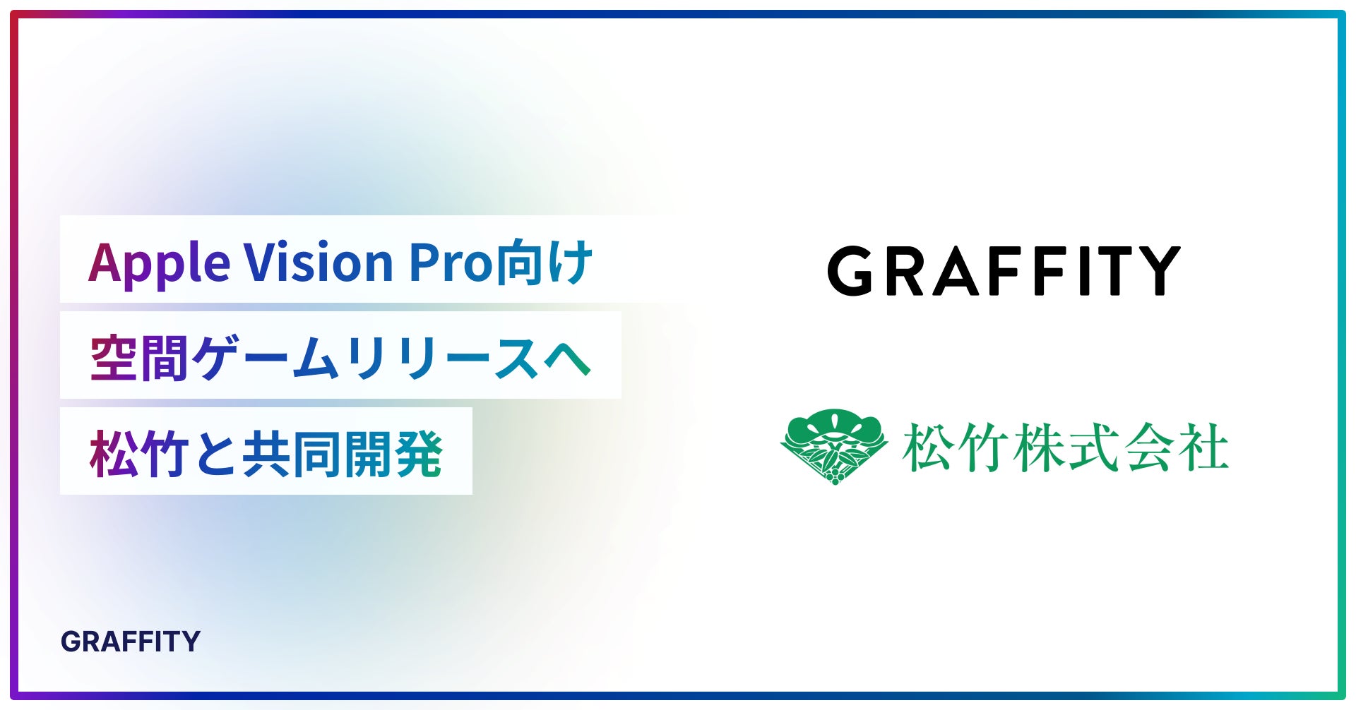 ARエンタメのGraffity株式会社(代表取締役社長:森本俊亨、本社:東京都渋谷区、以下「Graffity」)は、松竹株式会社(所在地:東京都中央区、代表取締役社長:髙𣘺 敏弘、以下「松竹」)と業務提携を締結し、グローバル展開を見据えたApple Vison Pro向け空間ゲームの共同開発に着手することを発表しました。GraffityのApple Vision Pro向け空間ゲーム企画力・技術力と松竹のグローバルへのパブリッシング力を掛け合わせることで、より多くのユーザーに優れたコンテンツを提供することを目指しています。