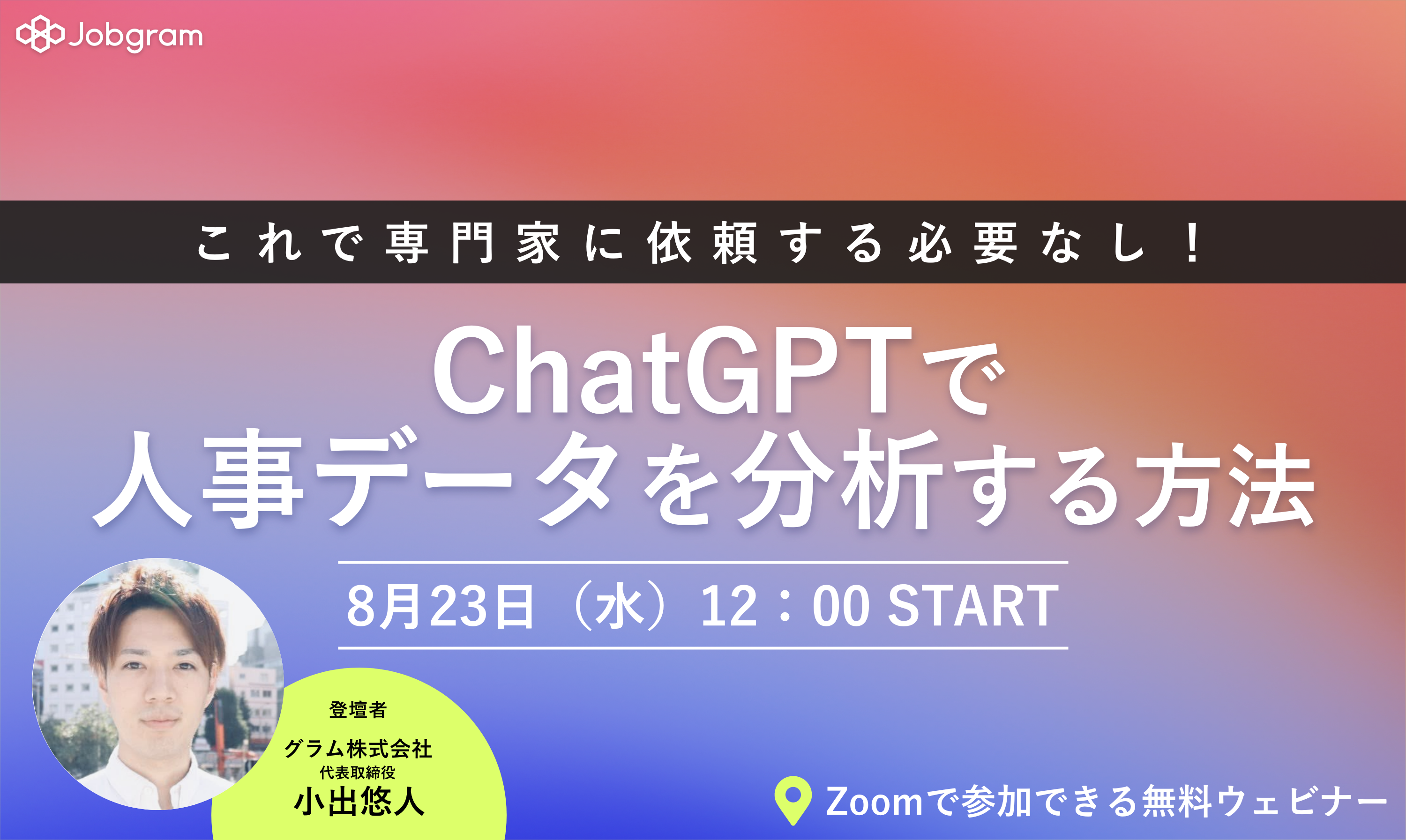 【無料オンラインセミナー】8/23(水)『これで専門家に依頼する必要なし!ChatGPTで人事データを分析する方法』を開催