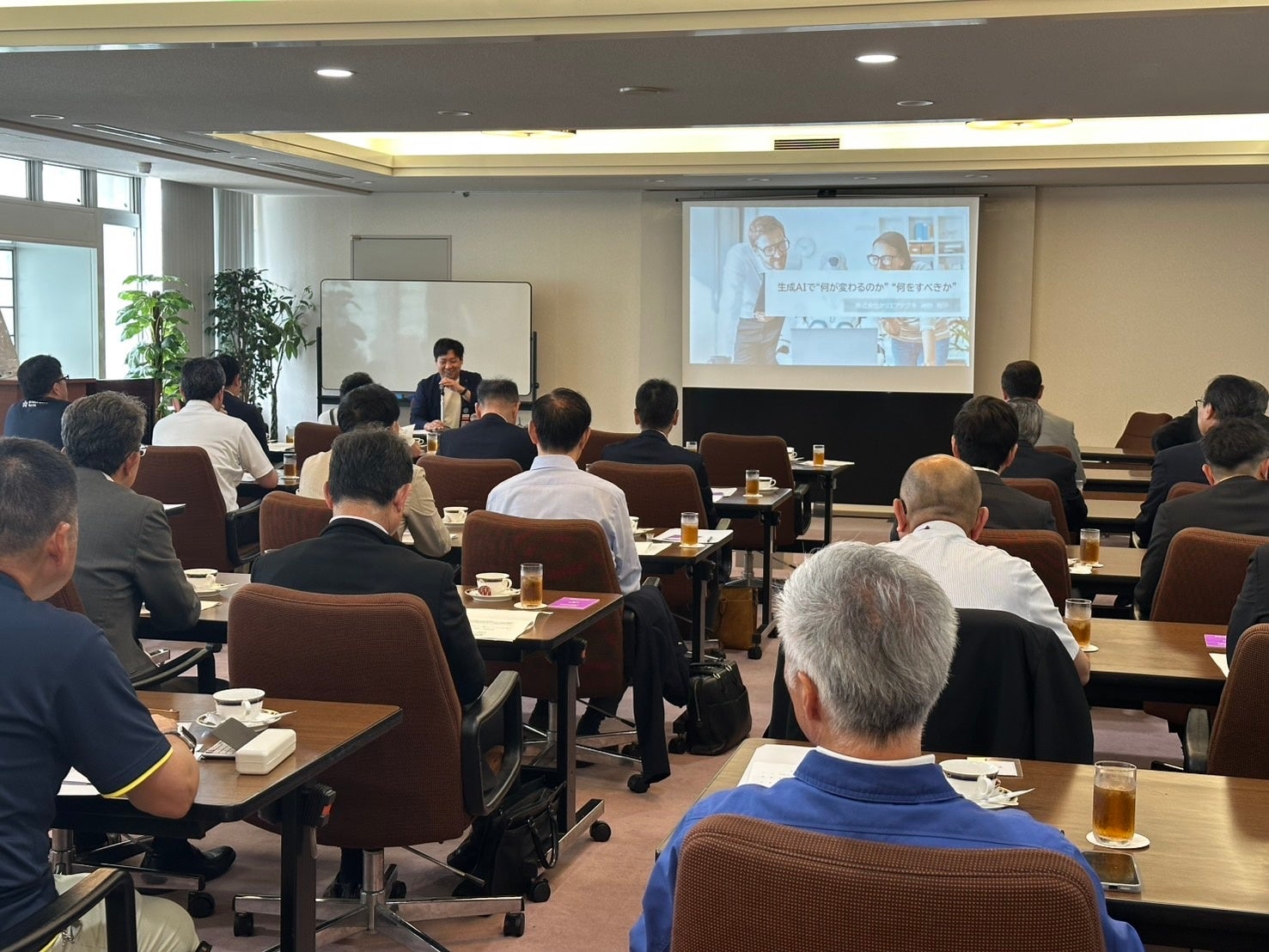 6月16日、今治経済クラブ(愛媛県)の地元経営者向けの「生成AIを経営にどう活かすか」「人材採用・組織はどう変わるか」をテーマとした研修会において、当社取締役 神野哲平が登壇。生成AI活用についてのセミナーを開催しました。参加者からは、生成AIの導入に関しての深い気づきを得たと好評をいただきました。今後も自治体や商工会議所などの経済団体様と連携しながら、生成AIの活用ノウハウや成功事例をお伝えしていきます。