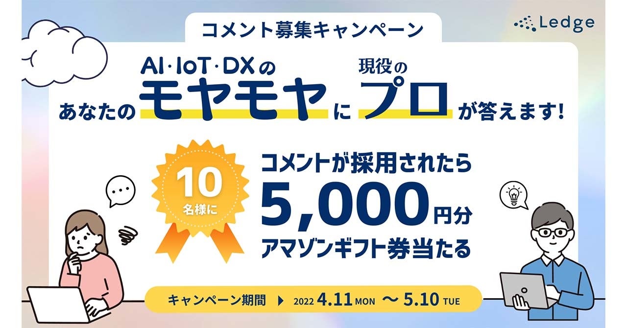 そこで、今回実施する読者参加型企画「あなたのAI・IoT・DXのモヤモヤ大募集」キャンペーンを通じて、Legde.ai読者がテクノロジー領域で抱えている日頃の“モヤモヤ”に、レッジがAI業界の一員として向き合います。