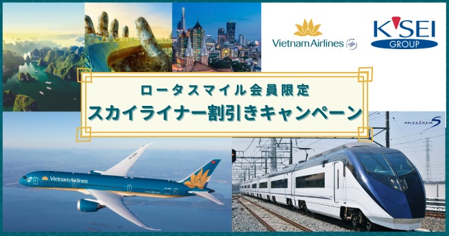 ベトナム航空(日本支社 所在地:東京都千代田区、総支配人: ゴー・シー・アイン)は、同社マイレージプログラム・ロータスマイルの新規会員獲得と会員特典拡大を目的とした新しい試みとして、京成電鉄(本社: 千葉県市川市、社長: 小林 敏也)が運行をする京成スカイライナーの片道乗車券・特急券の割引きが受けられるキャンペーンを2024年4月1日(月)~2024年6月30日(日)までの期間限定で実施いたします。