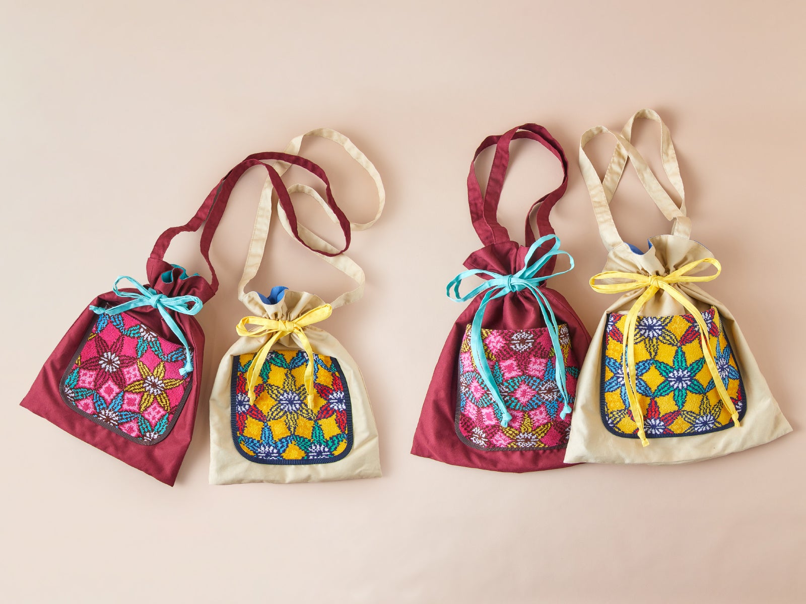 (左)巾着バッグ ¥9,900(税込) 約縦31×横14×マチ14cm 2種類