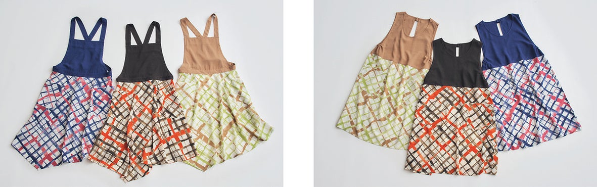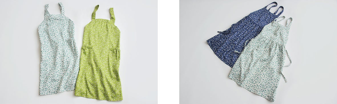 DAKSとイラストレーター永宮陽子さんがコラボレーションをし描かれた、水彩調ハウスチェックプリント×無地の切替エプロン。サラリとした柔らかいポリエステル素材で軽い着心地になります。後ろ結びのクロスタイプは裾がアシメトリーなデザインのエプロンです。チュニックタイプは両脇にゴム入りで、幅広い方に着用していただける仕様になっています。3色カラー展開。