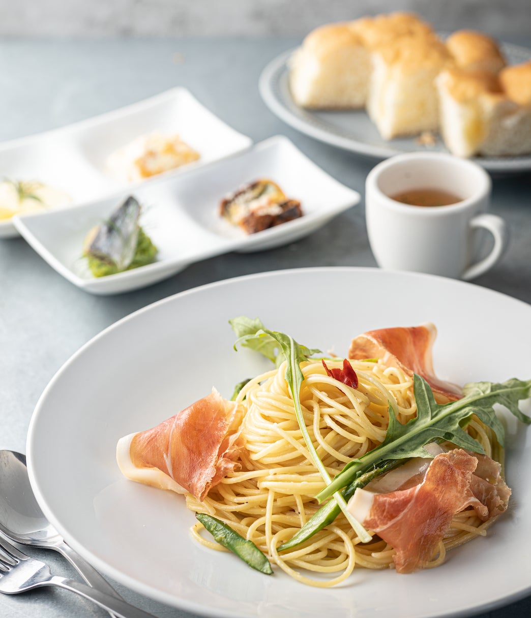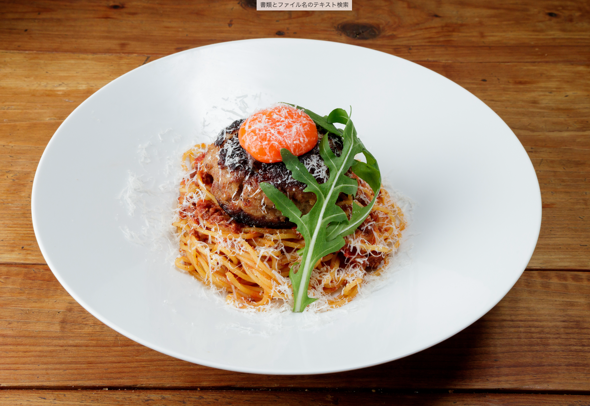 自家製ハンバーグミートソースパスタ 温泉卵のせ1,848円(税込)