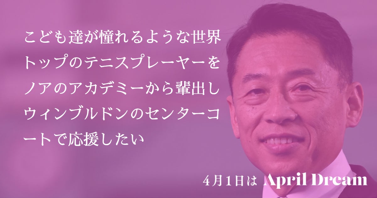 「世界で戦えるテニス選手になるには、定期的な海外遠征などが必要で家族の負担も大きい。私たちがスポンサーとして支えつつ、子どもたちが憧れるトップ選手をノアのアカデミーから輩出したい。一度でいいから所属選手がウィンブルドンのセンターコートでプレーするのをファミリーボックスで応援したい。」と夢を語るのは、ノアインドアステージ株式会社代表取締役社長大西雅之。