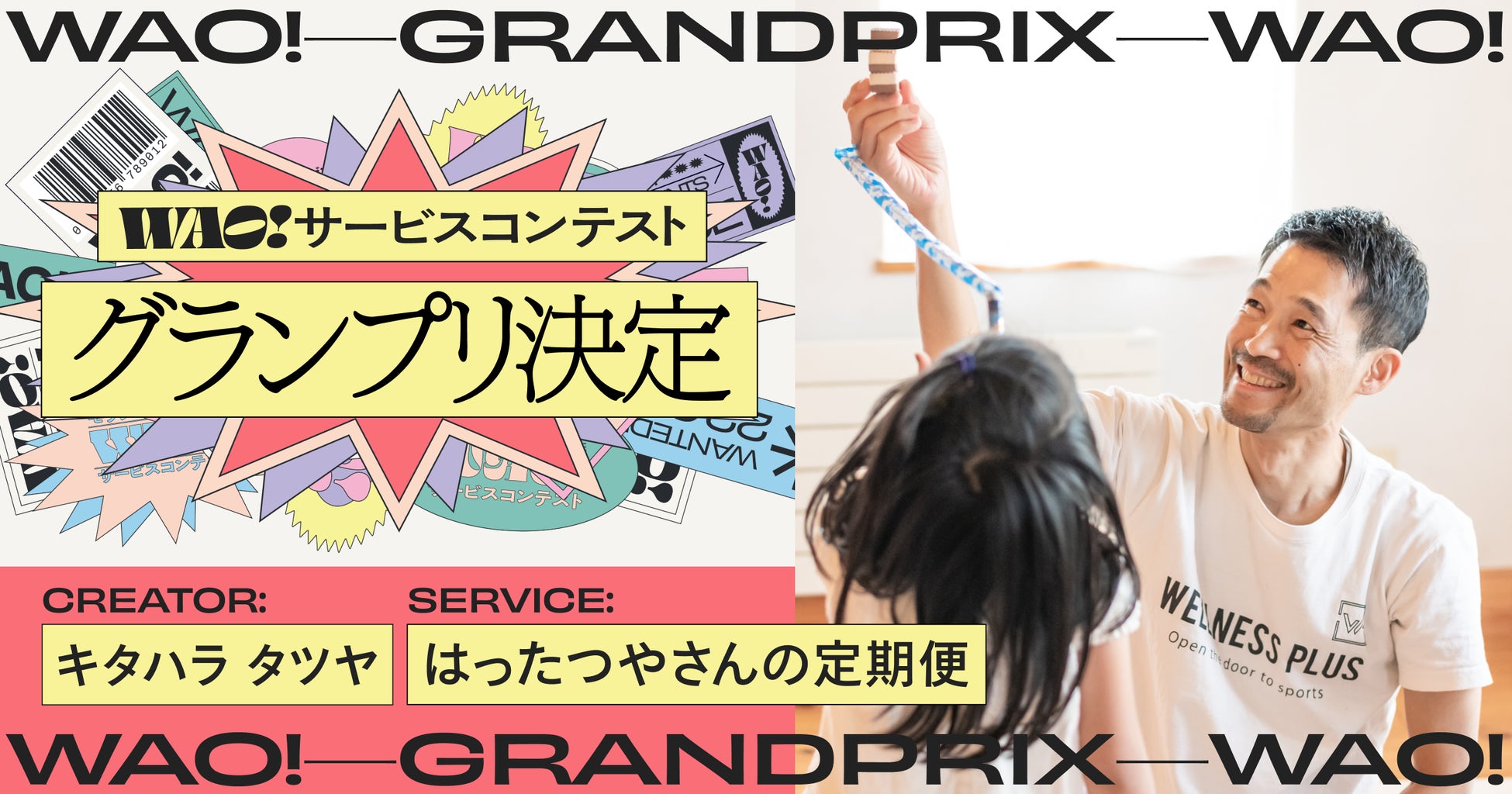 エントリー総数119件の素晴らしいサービスの中から、脳神経の観点から子供の眠った力を引き出して発達支援を行う、キタハラタツヤさんの「はったつやさんの定期便」がもっとも「WAO!」なサービスとしてグランプリに輝きました。