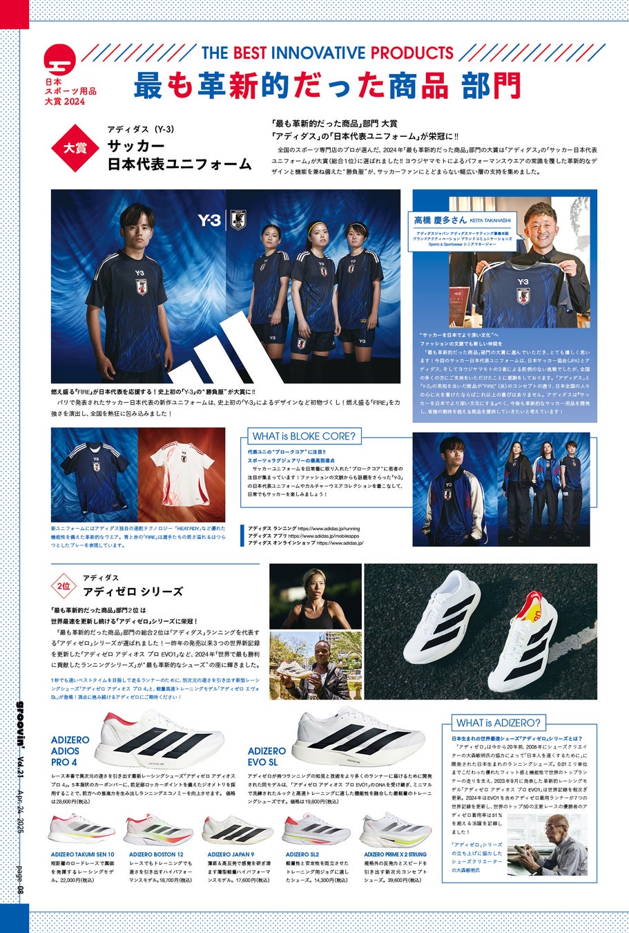 日本スポーツ用品大賞実行委員会(東京)と株式会社グランドフリートは、スポーツライフスタイルマガジン「groovin’」(グルーヴィン)の2025年春号を発行しました。コンテンツでは「日本スポーツ用品大賞2024結果発表!!」をはじめ、スポーツ&アウトドアにまつわる注目の話題や魅力的な人々や、革新的なプロダクトを一挙大紹介しています。