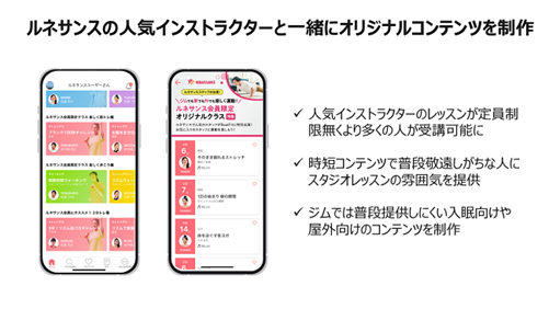 一方、ジムの中でもBeatfitを利用することで体験価値が高まることも実証しました。例えば、クラブのランニングマシンではレッスンを提供できないのが通常ですが、Beatfitでは、耳元でトレーナーが速度や傾斜を指示してくれるので、退屈に感じやすいランニングマシンの時間を、「スタジオレッスンを受けているように楽しむことができた」などのお声をいただきました。また、ルネサンスのYouTubeチャンネル「ルネサンスチャンネル」の人気YouTuberとコラボ動画を制作しました。