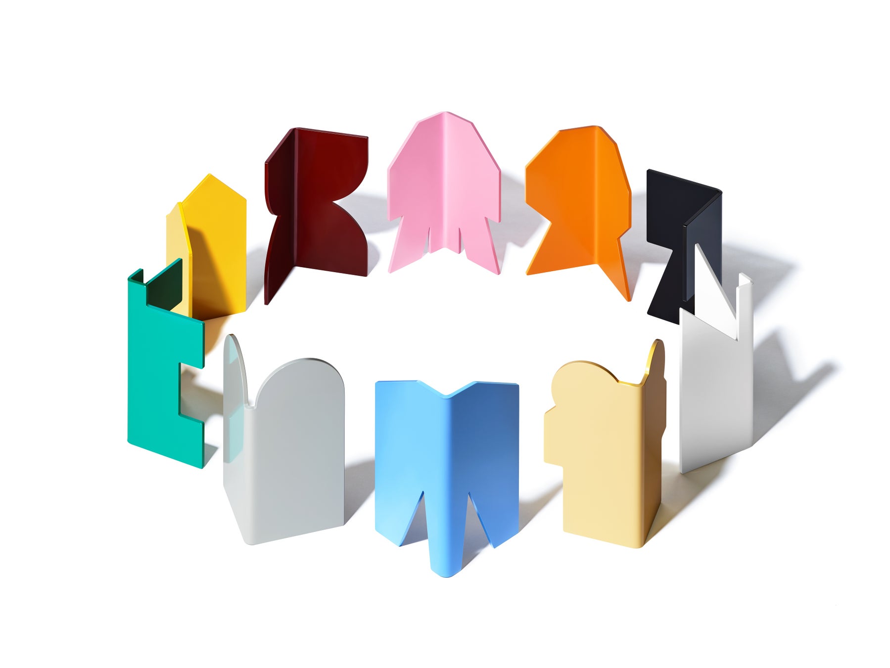 グラフィックデザイナー小林一毅氏が平面的な造形をミニマルな立体に展開した「OSUMŌ(オスモー)」は、折り紙をモチーフとした厚さ4.5㎜のスチール製ブックエンドです。同氏にとって初の金属を用いた立体デザインとなります。