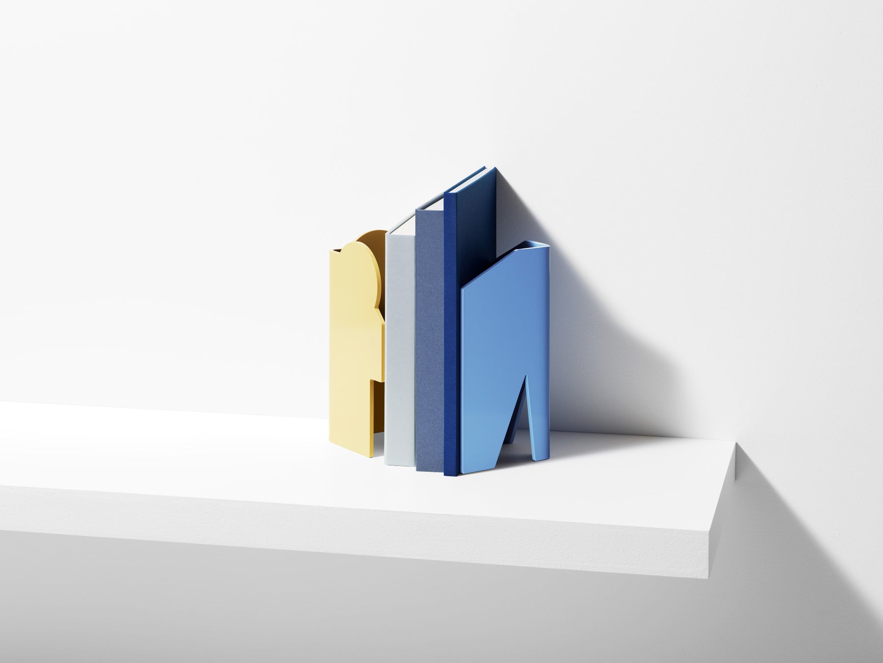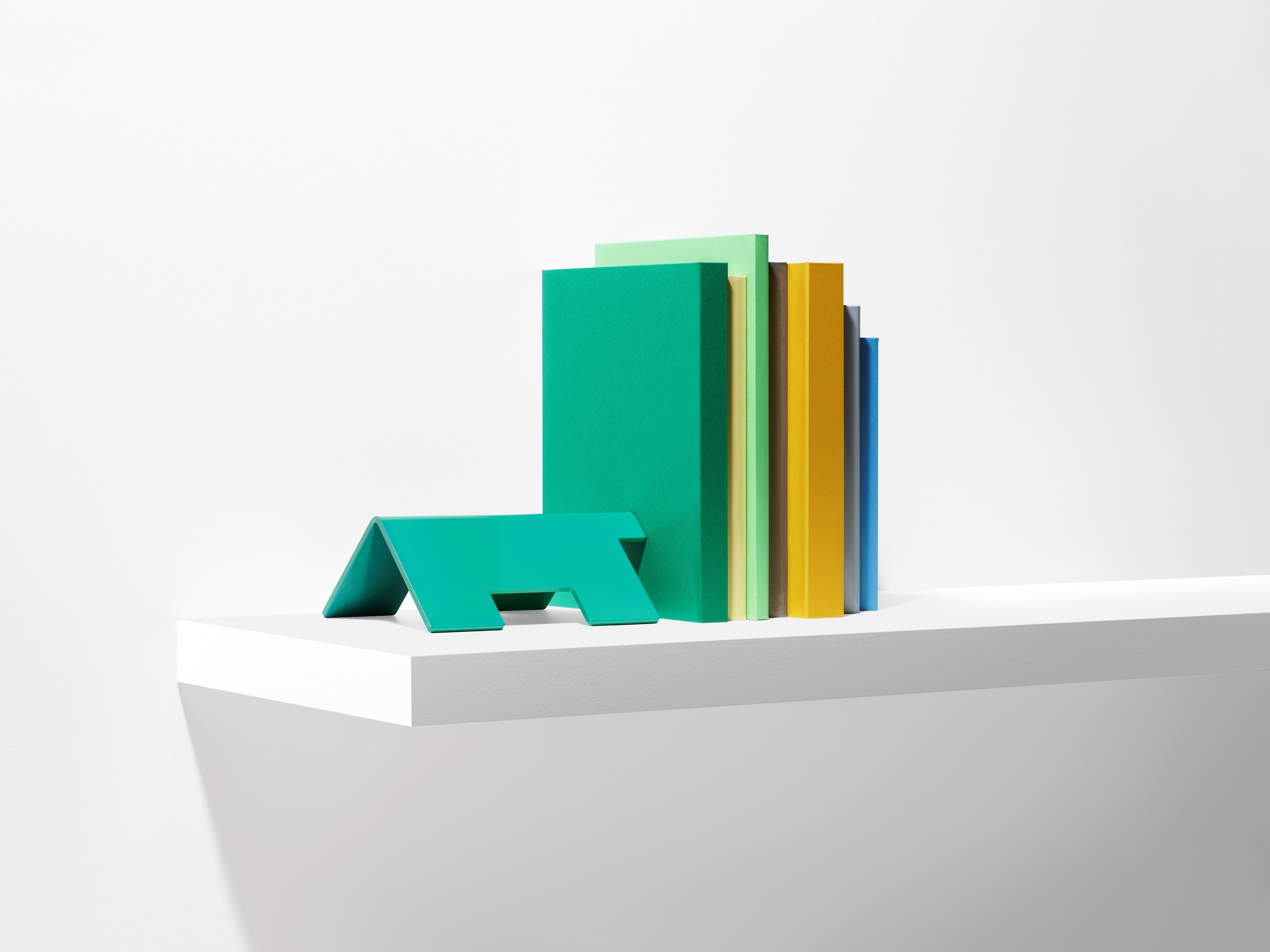 日本ベネックス、グラフィックデザイナー小林一毅がデザインしたスチール製のブックエンド「OSUMŌ(オスモー)」を発売