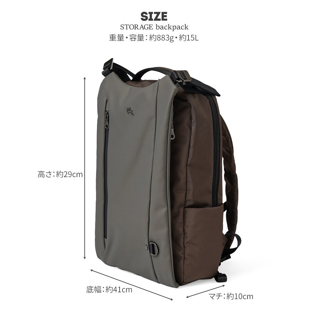 晴雨兼用 の オリジナル 折りたたみ傘 を 付属し、防水性 に 優れた 素材 と 止水ファスナー を 採用した 2層式 リュックサック。