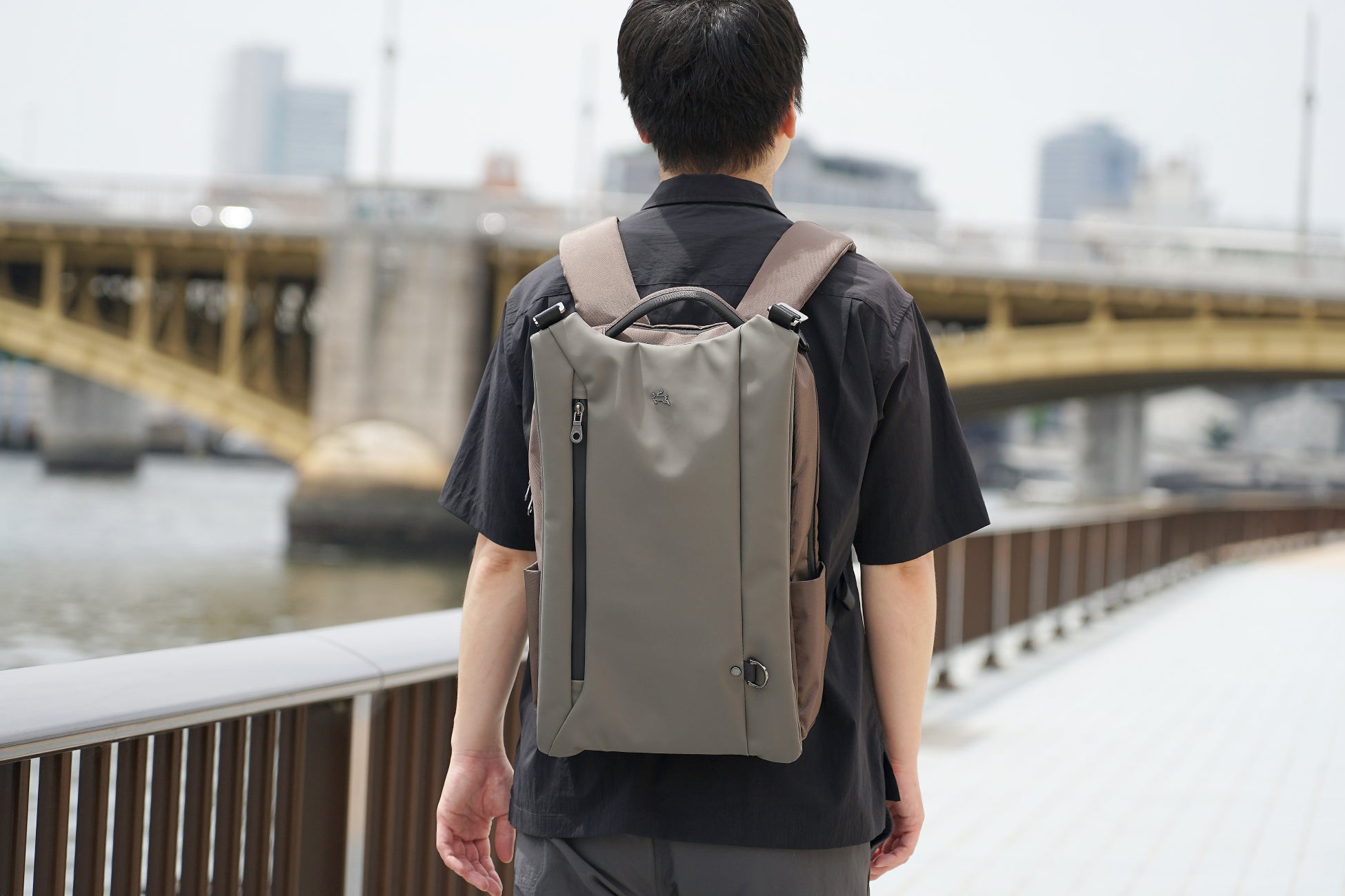 2つ の コンパートメント を 備え、荷物 の オーガナイズ に 適した設計 で 2種類 の 素材 を 採用し、スニーカー にも スーツスタイル にも 映える デザイン。