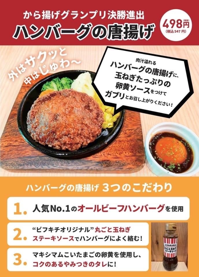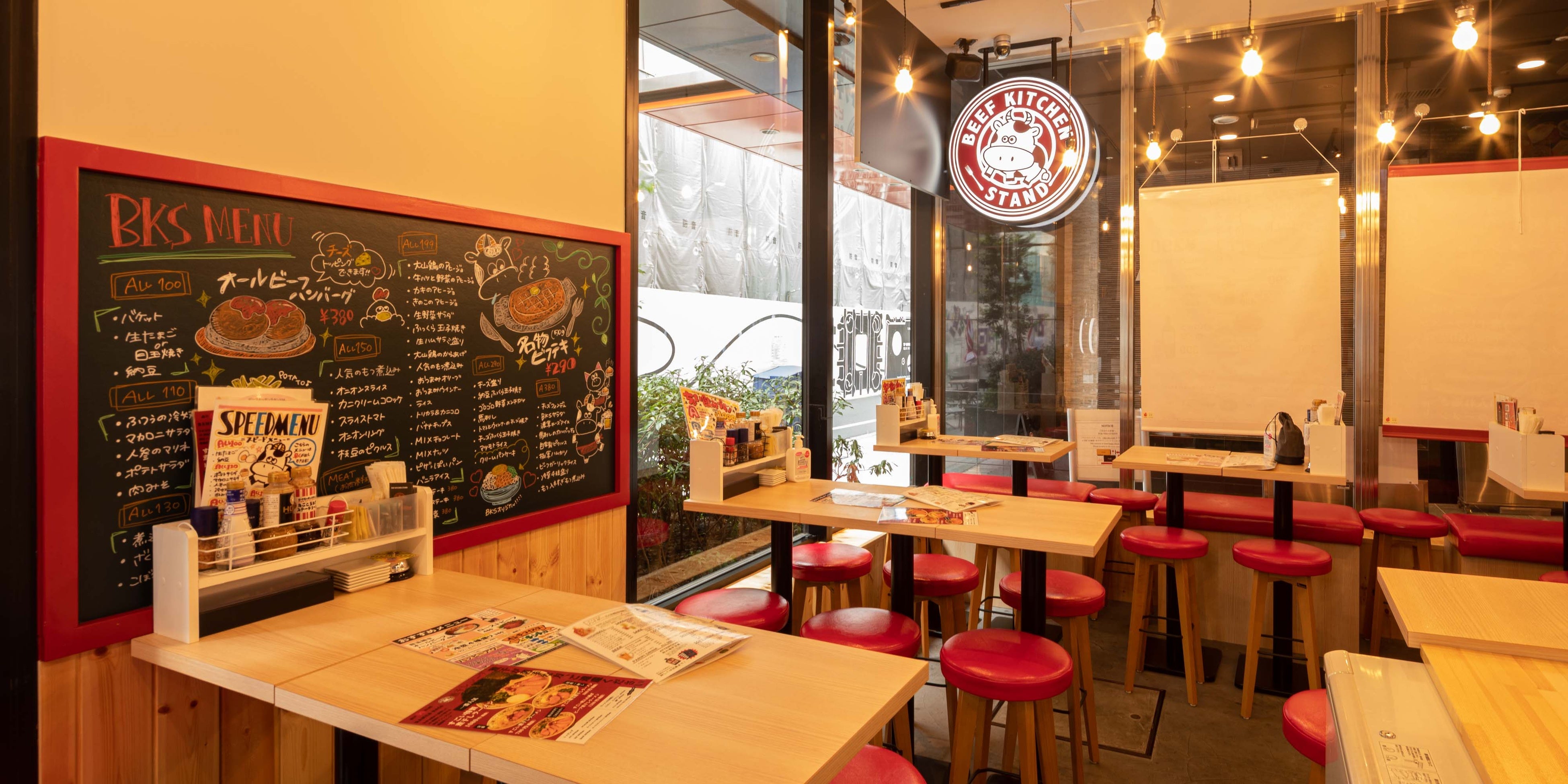 『大衆ステーキ酒場 BEEF KITCHEN STAND』(ビーフキッチンスタンド) は、牛肉のプロフェッショナルが選び抜いた高品質の牛肉を用いて、ステーキ290円(319)や99円(108)〜398円(437)の種類豊富な小皿料理をつまみながらお酒が飲めるという低価格で楽しめる肉バルです。その他にも、すごい煮干ラーメンやターバンカレー監修の美味しい食事メニューから、第14回日本から揚げグランプリで金賞を受賞した「ハンバーグの唐揚げ」など“高品質で美味しく、少しずつ多くの食事が楽しめる”肉バルです。