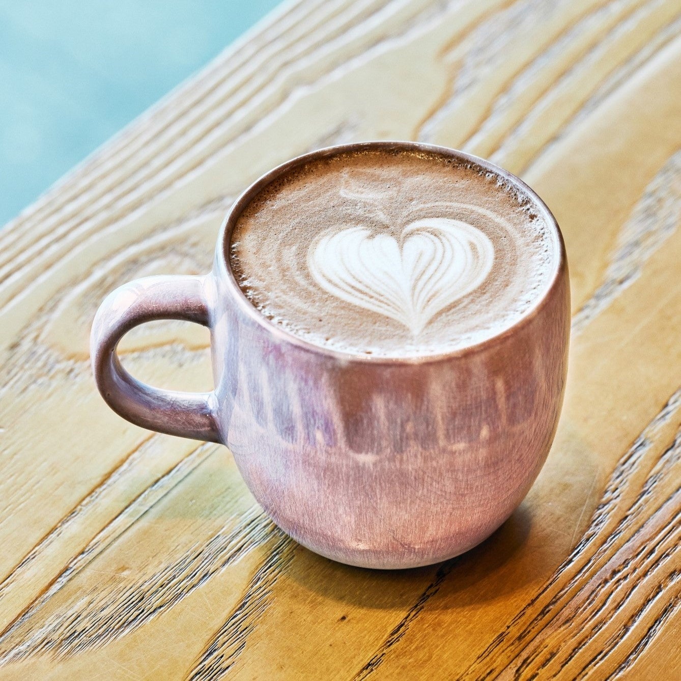 ダークチョコレートパウダーとエスプレッソの芳醇な香りと甘みに、バニラビーンシロップの繊細な味わいが重なるモカ。萩焼の象徴とも言えるやわらかい風合いの色彩、美しいグラデーションにインスパイアされ、モカの天面にはミルクとエスプレッソが織りなすアートを描きます。手仕事から生まれる色彩の妙を時間をかけて楽しんでいただくために、温度が変化しても違った表情を楽しめる多層的な味わいを目指しました。見た目で、味わいで、ぬくもりを届けるあたたかみ溢れる一品です。 *桜は使用していません。