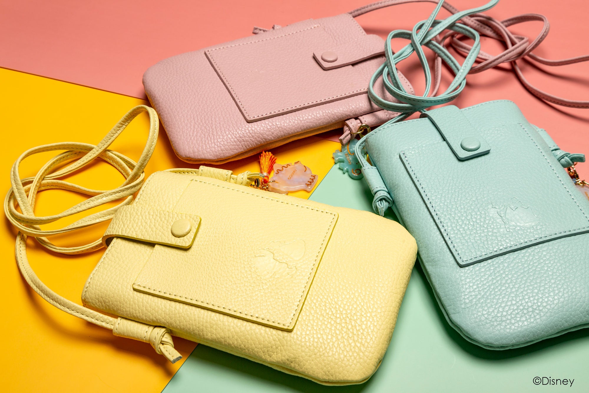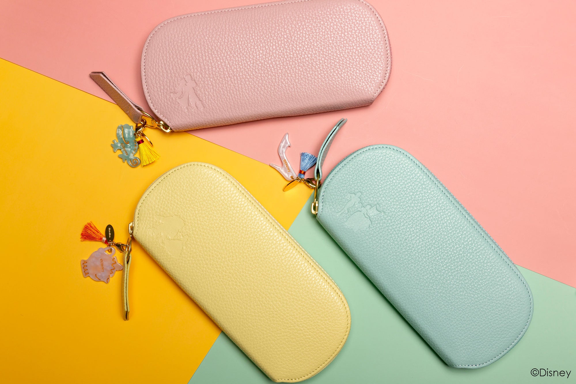 本コレクションでは、itten-ittenのカラフルでポップな革小物シリーズ「BOLLA(ボーラ)」の人気アイテムをベースに、プリンセスとミッキーマウスのテーマで各4アイテムを展開します。すべての製品に各キャラクターをイメージしたチャームが付属された、itten-ittenだけの大人楽しい限定コレクションです。
