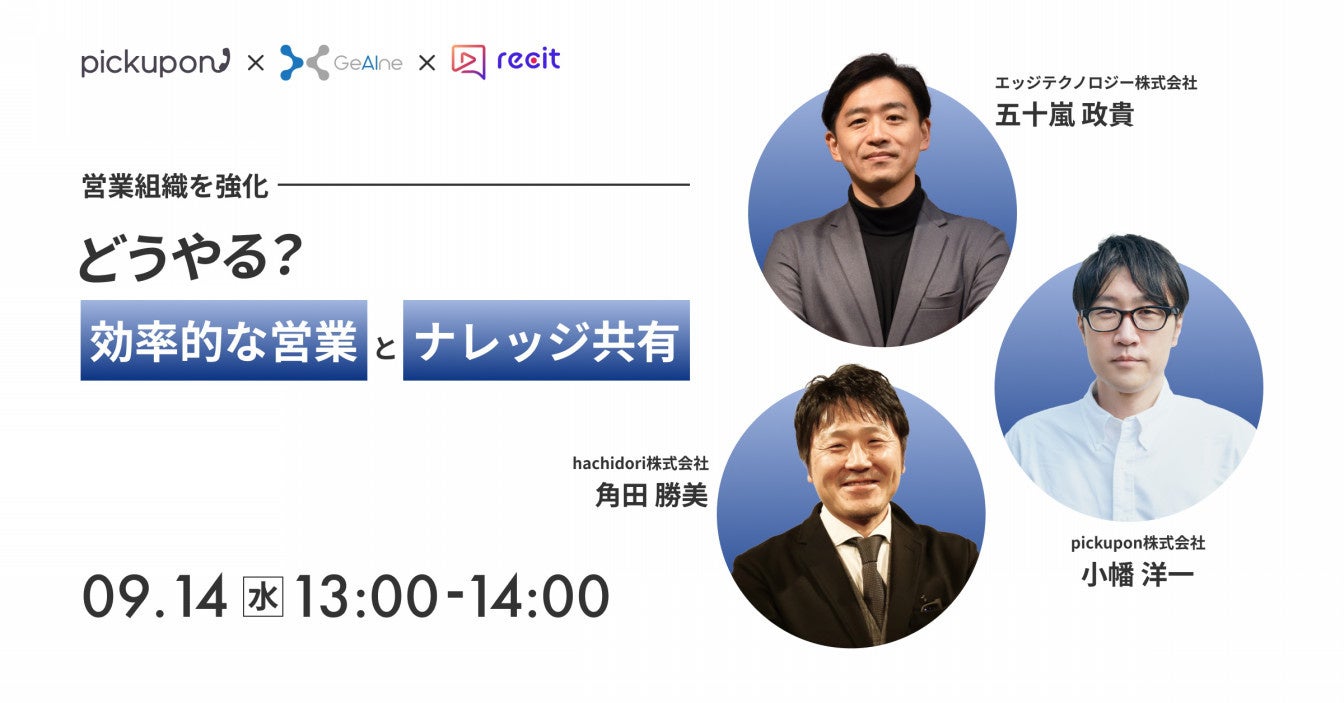 そこで今回pickupon×GeAIne×recitが共催にて、営業組織を強化する、ナレッジ共有と効率的な営業について徹底解説いたします。