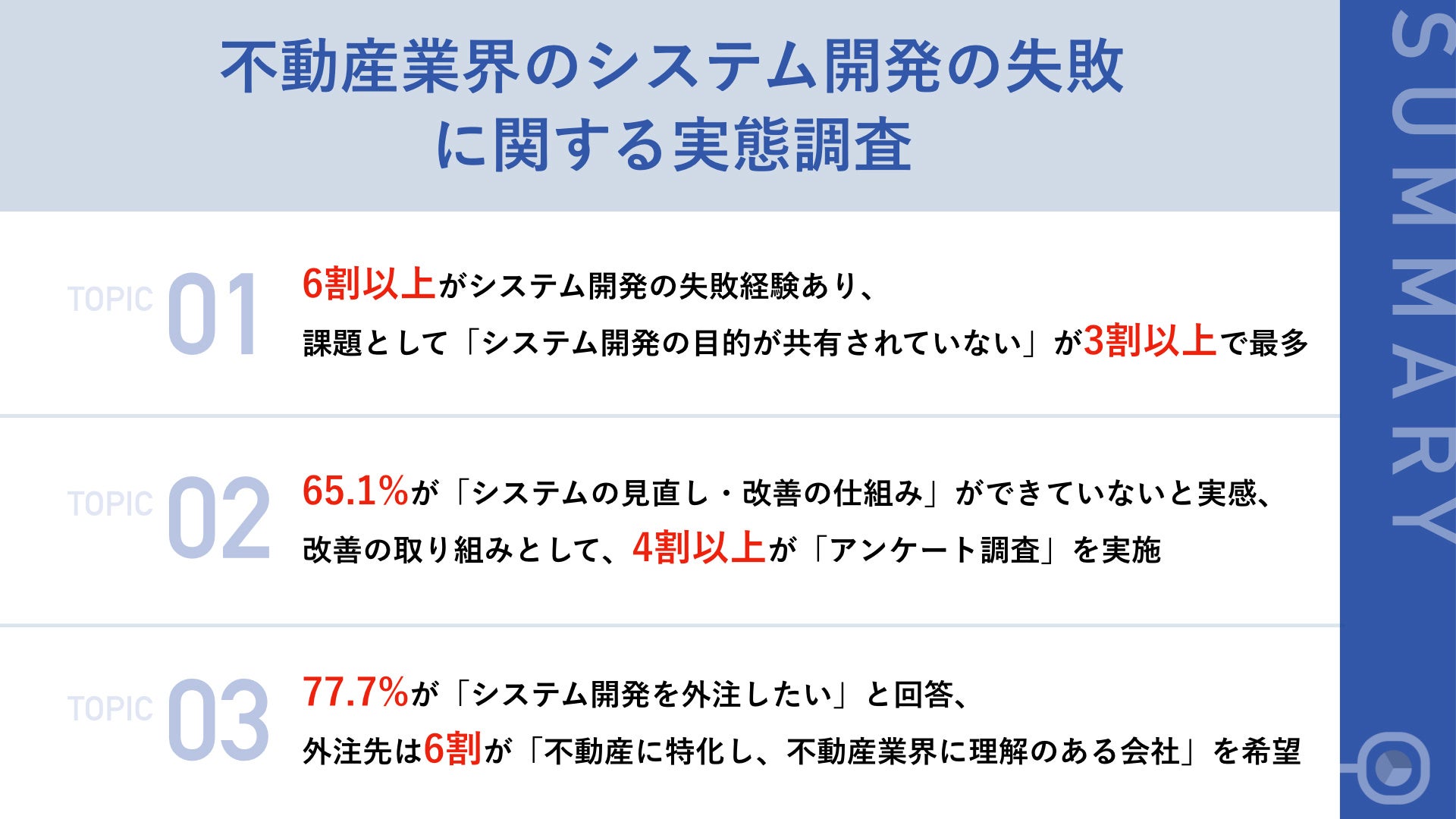 - 不動産業界の開発者の6割以上が、システム開発の失敗経験あり