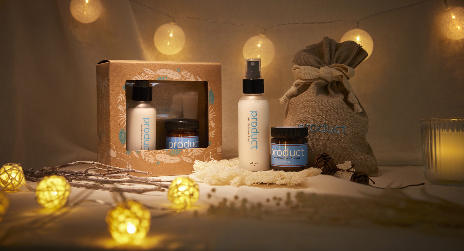 product が生まれたカリフォルニアを想わせるヤシの木や貝殻をホリデー仕様にした可愛いモチーフのギフトBOX。大人気の“ヘアワックス” と、乾燥をケアしてくれる髪タイプに合わせて2 種類の保湿アイテム、“ヘアシャインセラム(髪用美容液)” “ミルクミスト(ヘア・スキン保湿化粧水)” からお選びいただけます。どちらのセットにもproduct オリジナル巾着付きの限定アイテムです。乾燥が気になる季節に、自分自身へのご褒美、友人や家族など大切な方へのホリデーギフトとして、うるおいに満ち溢れたproduct を・・・