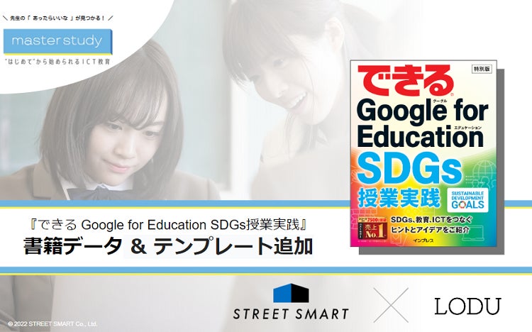 企業や教育機関のDXを支援する株式会社ストリートスマート(所在地:大阪府大阪市、代表取締役:松林大輔、以下:ストリートスマート)は2022年11月21日(月)、ICT教育を進める先生の「あったらいいな」が見つかる総合プラットフォーム『master study(マスタースタディ)』にて、大人気書籍シリーズ『できる Google for Education SDGs授業実践 特別版』のデータと付録で紹介しているデジタル教材テンプレートを公開いたしました。