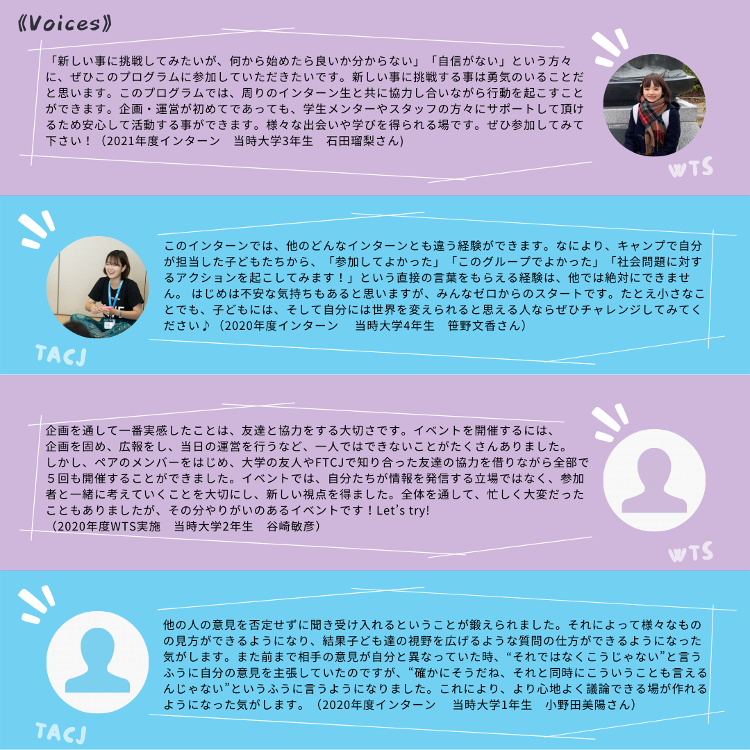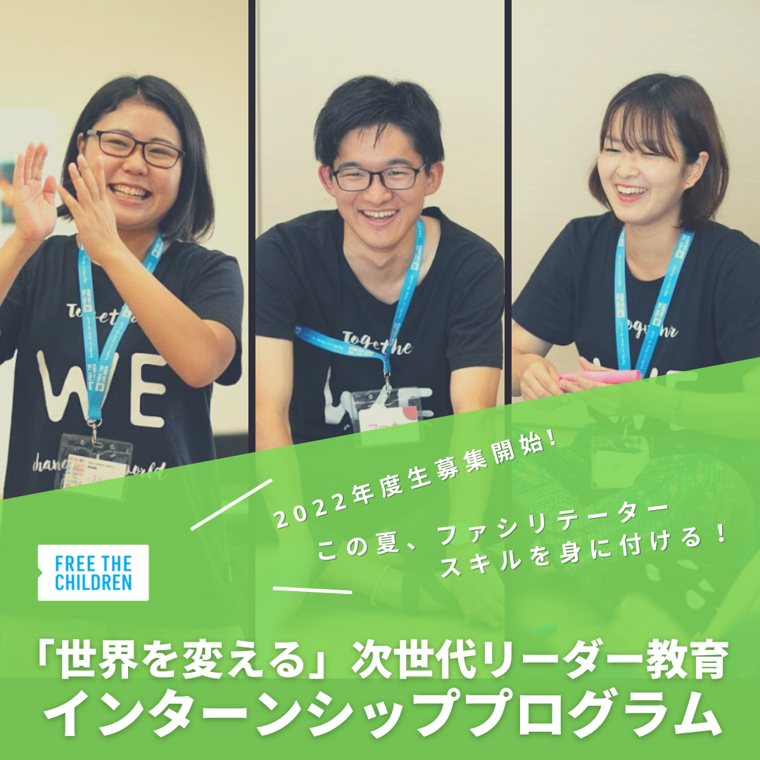 認定NPO法⼈フリー・ザ・チルドレン・ジャパン(所在地:東京都世⽥⾕区南烏⼭6-6-5-3F、代表:中島早苗)は、18歳~24歳対象の無料ファシリテーション研修「次世代リーダー教育インターンシッププログラム(6月13日〜8月30日)」参加者の募集を開始しました。当団体が実施している「テイク・アクション・オンライン・キャンプ(TACJ)」でのファシリテーション担当を目指すコース(オンライン+対面)と、社会問題について同世代とディスカッションなどを行うオンラインイベント「WE TALK "SOCIAL"(WTS)」の企画・運営を目指すコース(すべてオンライン)に分けて募集・実施します。