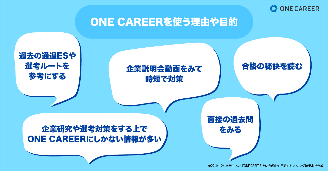 ※22卒~24卒学生への「ONE CAREERを使う理由や目的」ヒアリング結果より作成