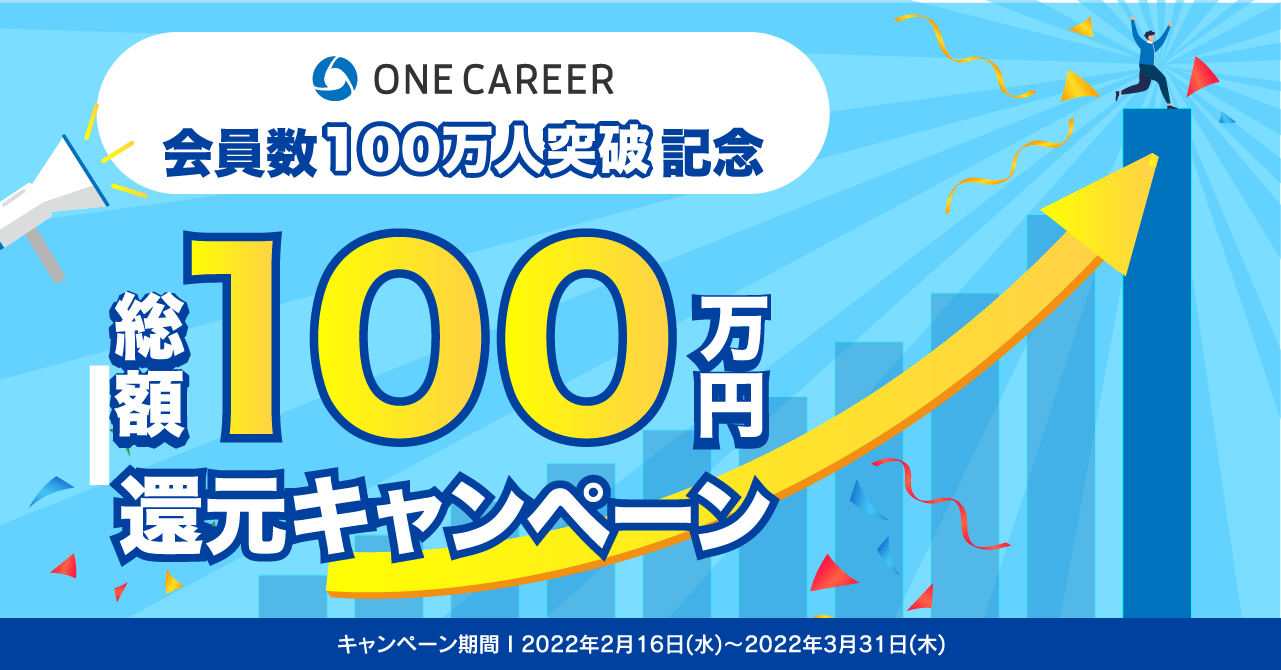 「ワンキャリア」会員数100万人突破と学生向け総額100万円還元キャンペーンのお知らせ