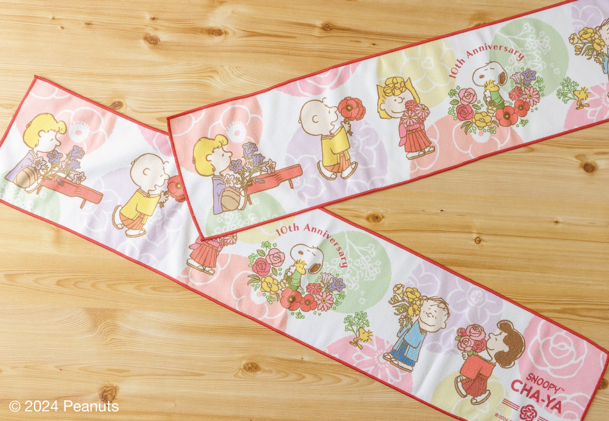 10周年を記念し、SNOOPY茶屋各店にて¥5000(税込)以上ご利用のお客様に1会計につき1枚限定でスポーツタオルをプレゼントいたします。