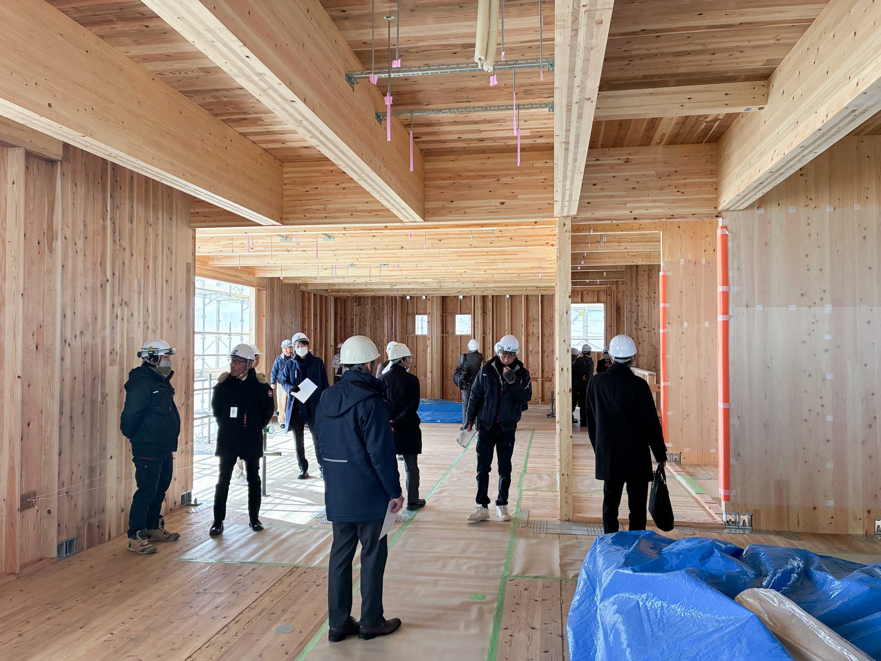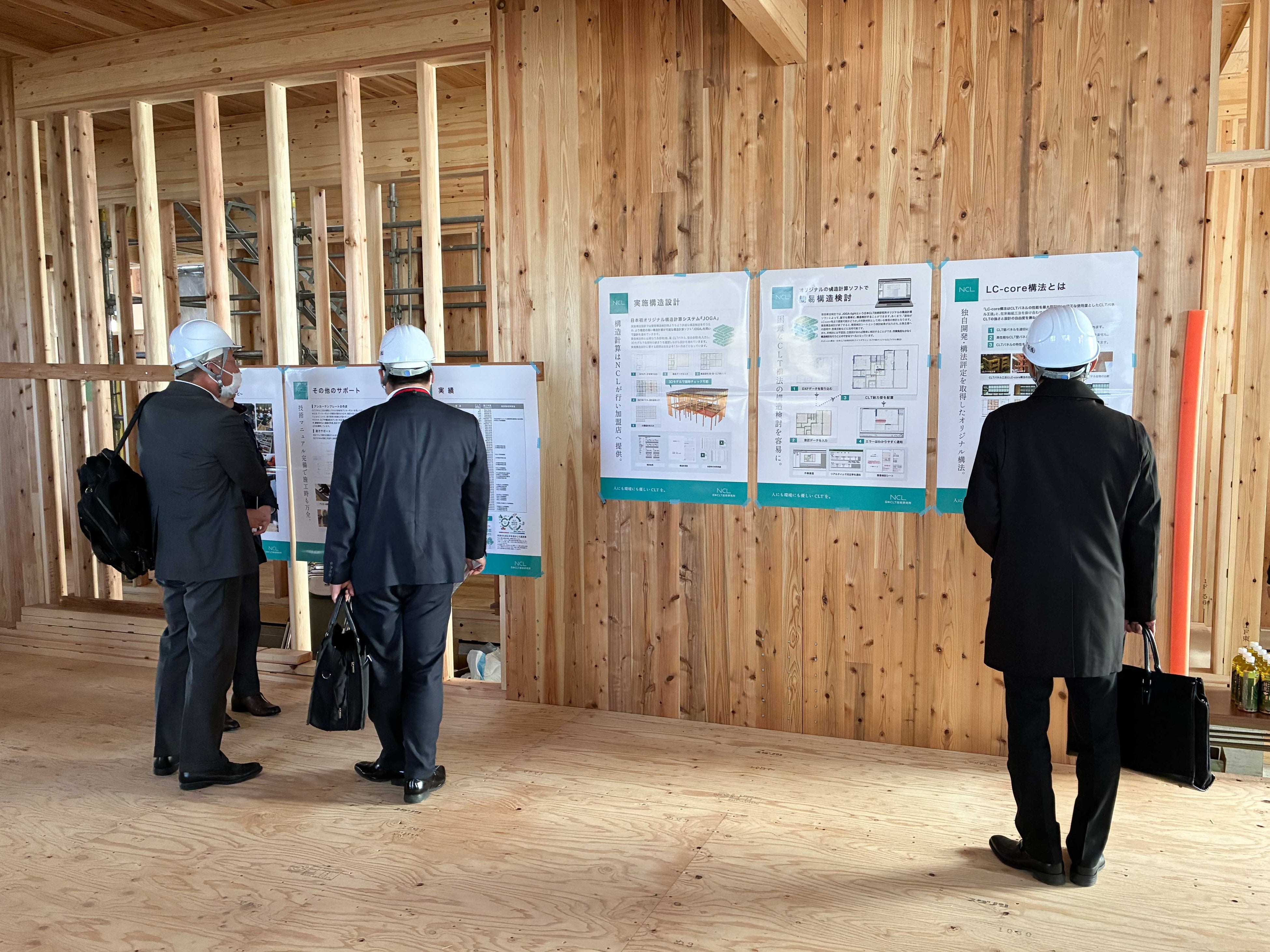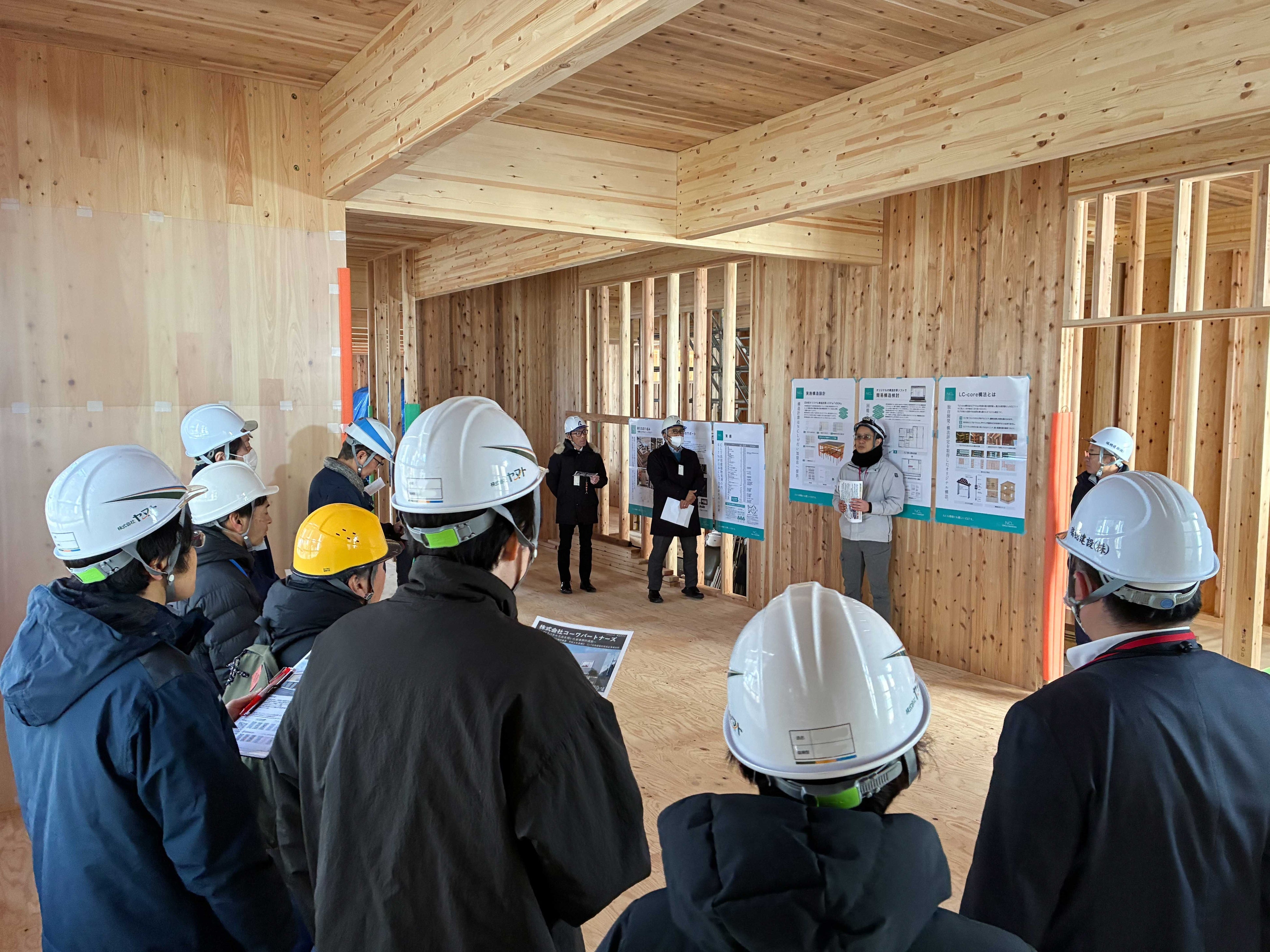 2026年1月21日(水)、22日(木)に実施した構造見学会ではCLTに関心を持つ大手ゼネコン、設計事務所、工務店のほか、金融機関や行政、研究機関、メディア関係者など約60名が参加しました。