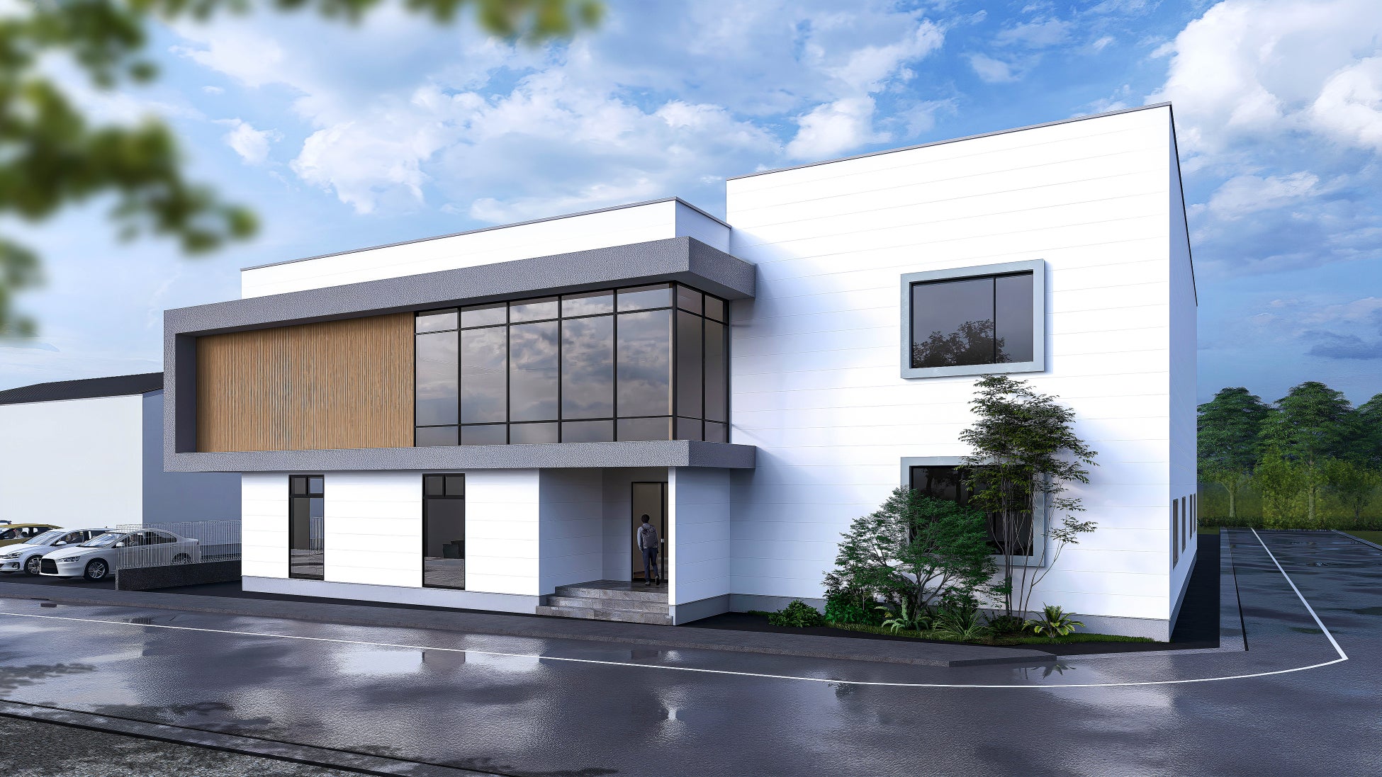 株式会社コーワパートナーズはその際に開催された構造見学会にてCLT建築に触れたことを契機に、本構法の採用を決定。このたび、LC-core構法による事務所の新築に至りました。