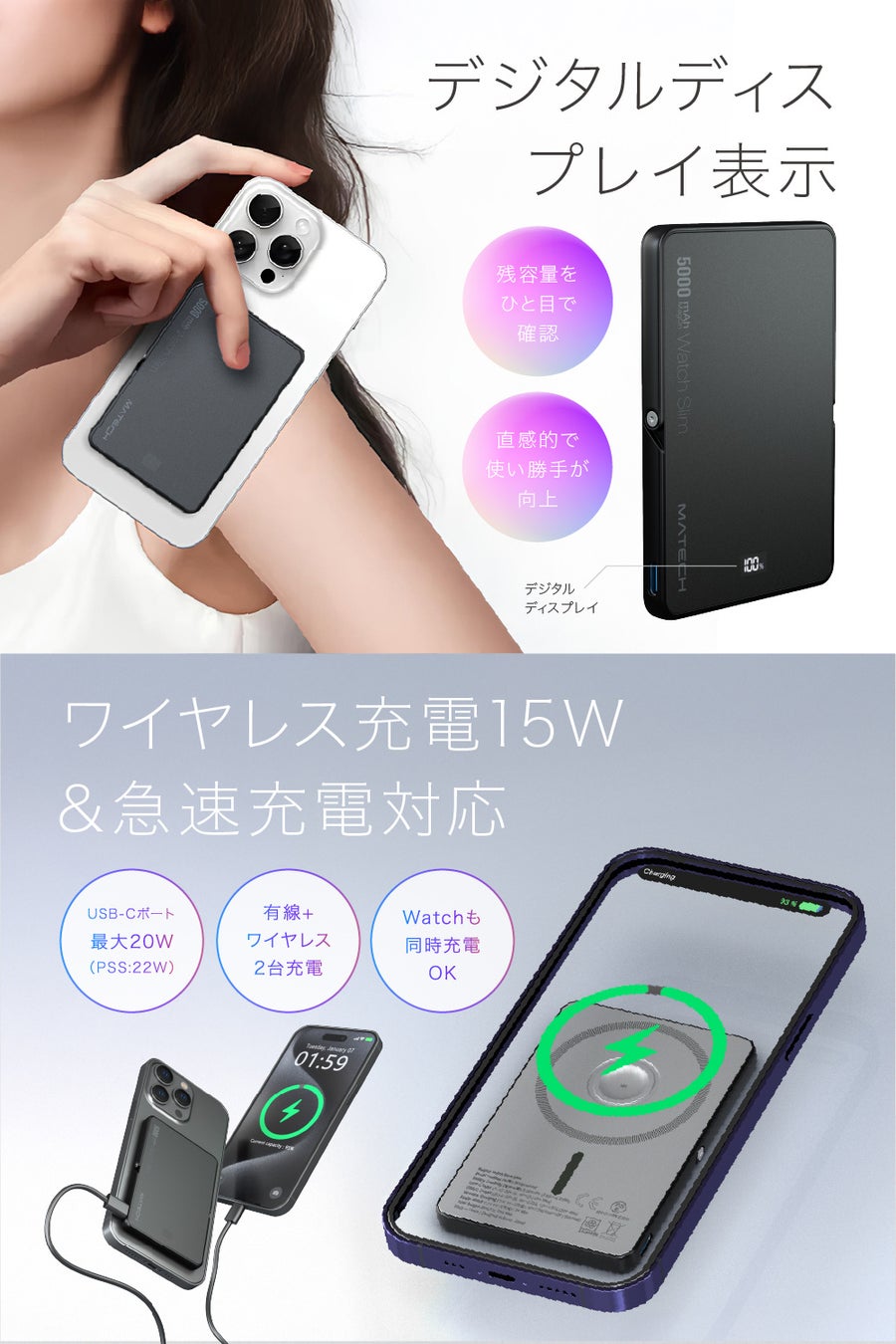 MATECH株式会社(本社:京都府京都市下京区、代表取締役:松本 弘暉)は、Apple Watch充電に対応した世界最薄クラスのモバイルバッテリー「MagOn Watch Slim 5000(ブラック)」を発売いたしました。