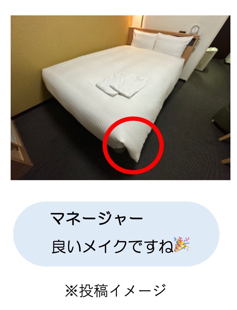 「はたLuck®︎」の「連絡ノート」機能を通じて「良いベッドメイク」の例を写真で解説するなど、情報共有の改善を行った結果、清掃を担当するメイクスタッフのミスが減り、同時にメイクの点検を担当するチェッカーの指摘・手直しが減ることにより点検時間が短縮されました。これまでは清掃完了後1時間ほど要していた点検が、清掃完了とほぼ同じタイミングで完了しているため、1人あたり約1時間削減できたことになります。
