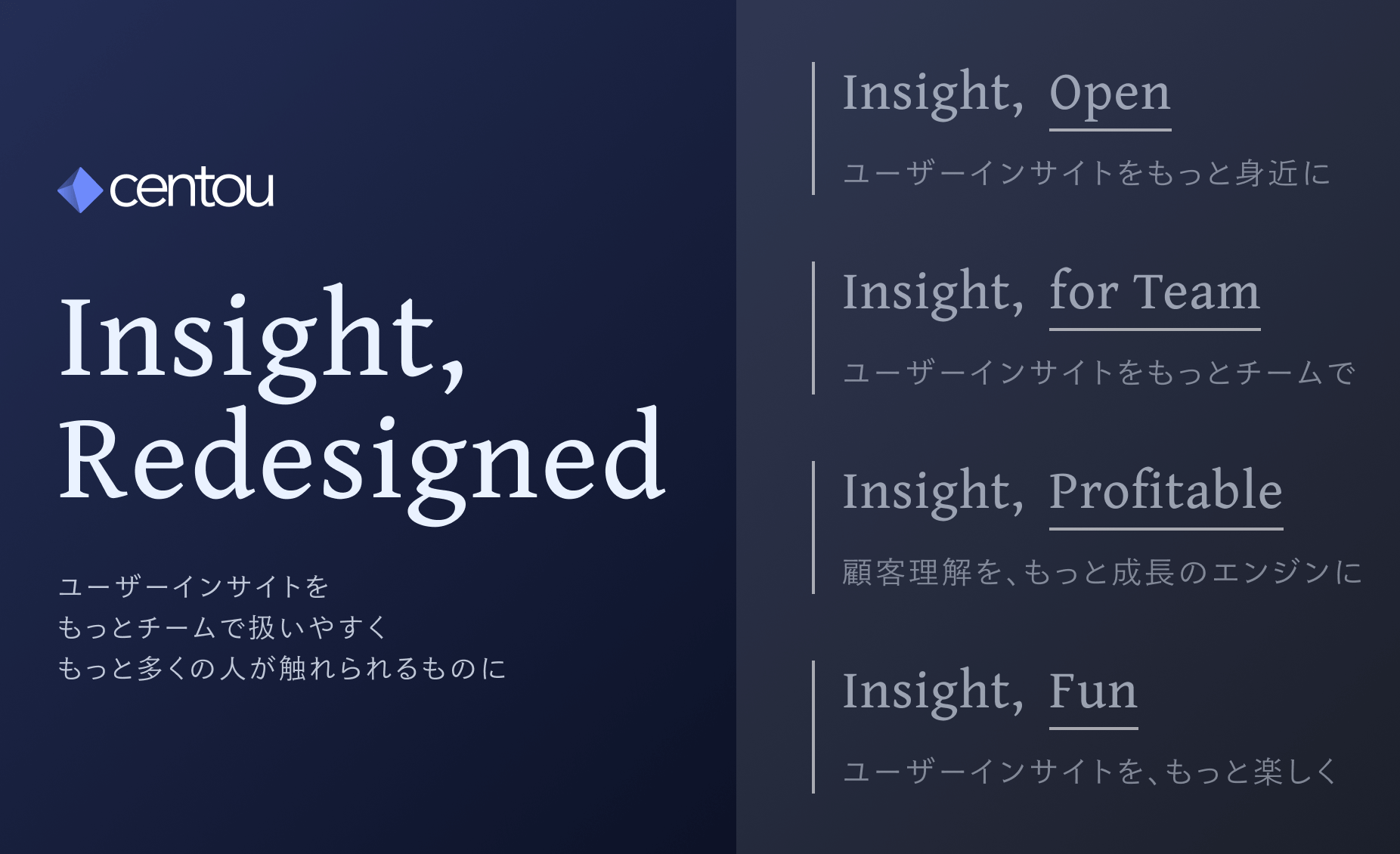 これまで特定の人しか扱えなかった「ユーザーインサイト」を、もっとチームでもっと議論可能な存在にするためにCentouは誕生しました。
