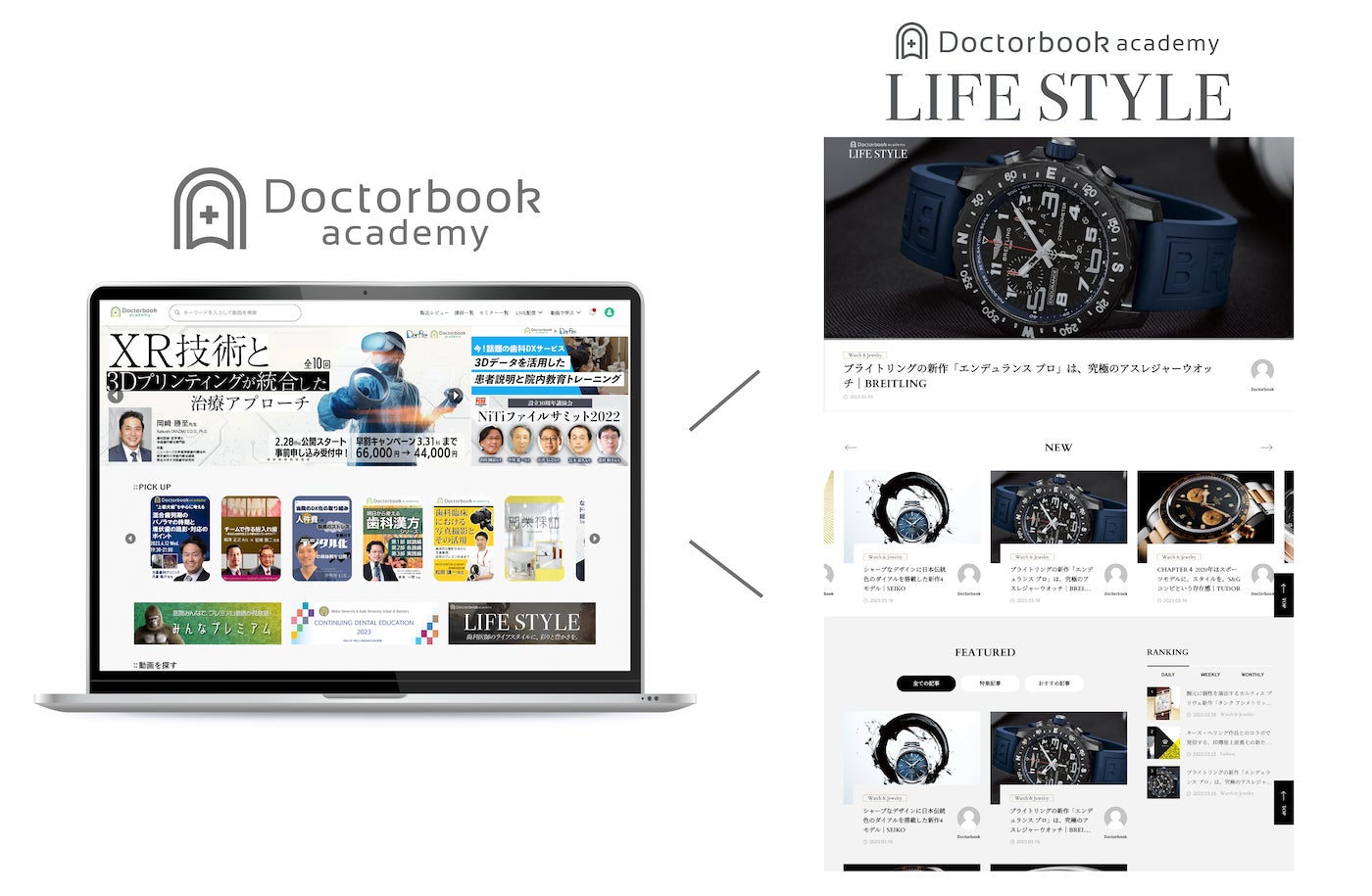 「Doctorbook academy」では、歯科臨床や学術・経営に関するコンテンツを扱うのに対し、新設の「Doctorbook academy LIFESTYLE」では、OPENERSと連携しファッション・ビューティー・カー・ウォッチ&ジュエリー・デザインなどのカルチャーからアセットマネジメントまで、歯科医療従事者のライフスタイルに関する発信をします。