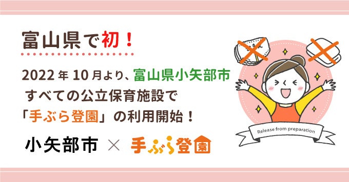 BABY JOB株式会社(本社:大阪府大阪市、代表取締役 上野公嗣)は、2022年10月より富山県小矢部市の全ての公立保育施設において、保育施設向け紙おむつのサブスク「手ぶら登園」が利用されることをお知らせします。富山県内では初の取り組みになります。