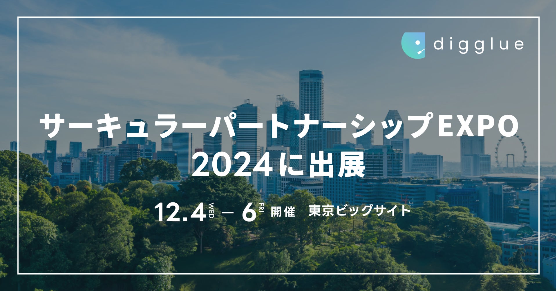 株式会社digglue(本社:東京都新宿区、代表者:原英之・中谷元)は、2024年12月4日(水)から3日間、東京ビッグサイトにて開催される「第1回サーキュラー・パートナーシップEXPO」に出展いたします。