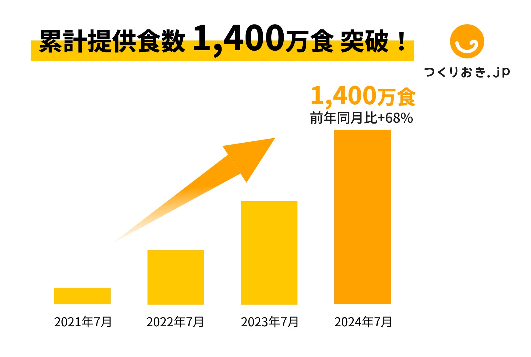 手作りおかずの宅配サービス「つくりおき.jp」を運営する株式会社Antway(所在地:東京都千代田区、代表取締役社長CEO:前島 恵)は、2024年7月につくりおき.jpの累計提供食数が1,400万食を突破したことをお知らせします(前年同月比+68%)。今後はさらなるお客様体験の向上を目指し、各種企画を強化してまいります。その一環として、今年8月には「暑さを乗り切る!夏の新メニューフェア」を開催する予定です。