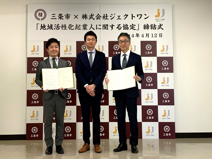 不動産の売買・賃貸・仲介および空き家活用事業を展開する株式会社ジェクトワン(本社:東京都渋谷区、代表取締役:大河幹男 以下、ジェクトワン)は、新潟県三条市と本日4月12日(火)に「三条市地域活性化起業人に関する協定」(以下、本協定)を締結したことをお知らせいたします。