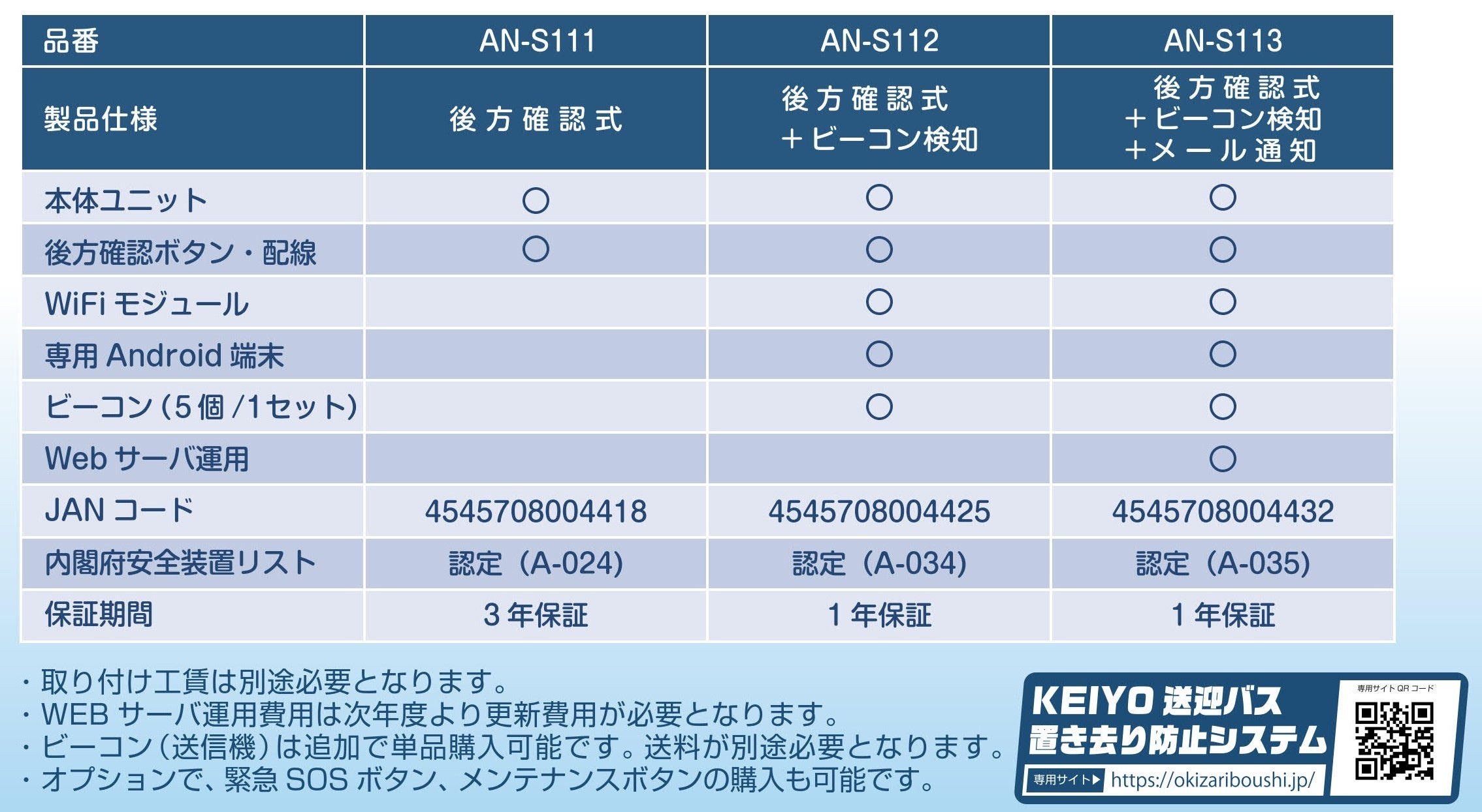 ◆機種名:AN-S111(降車時後方確認式)
