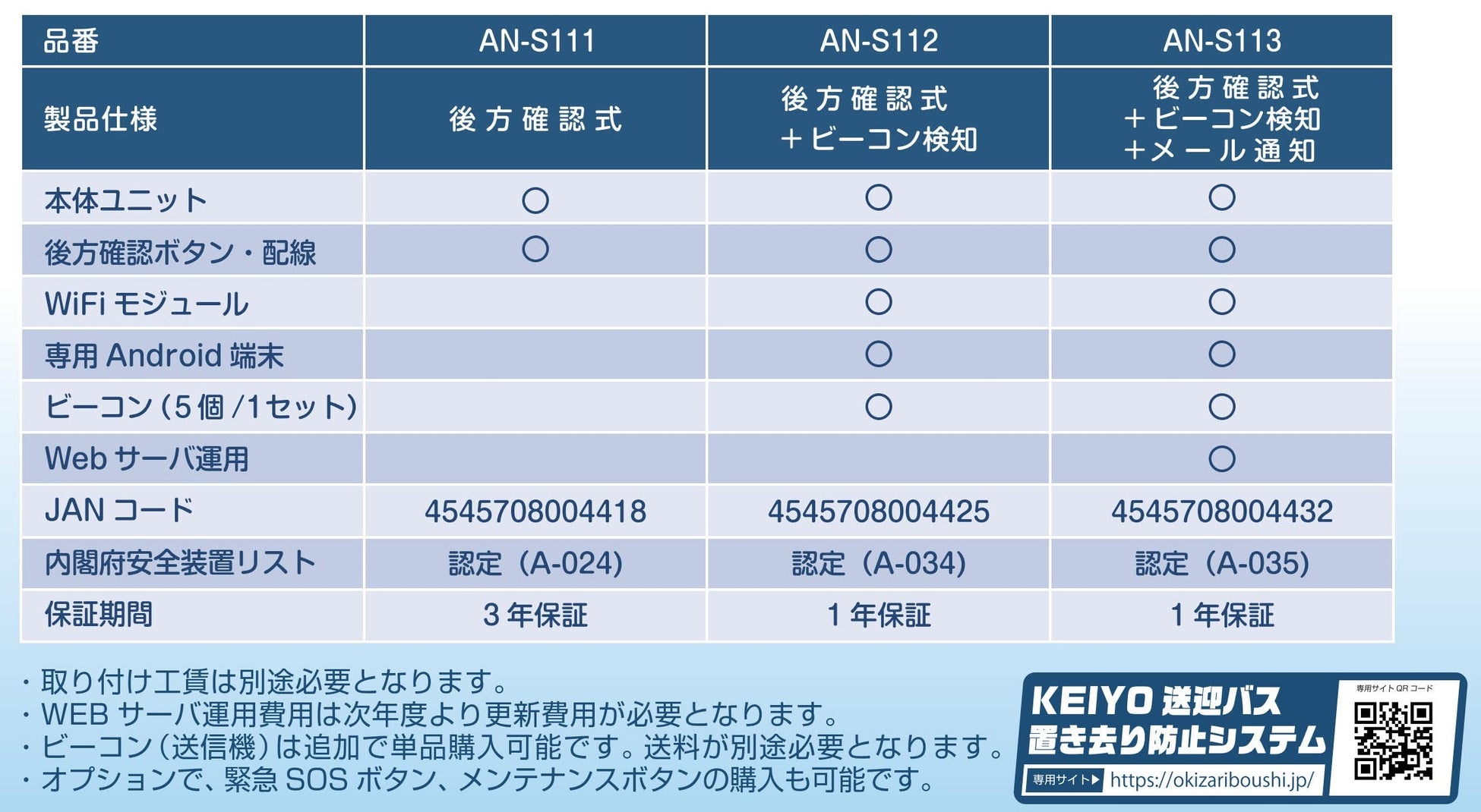 「AN-S111」 降車時後方確認式 認定番号:A-024