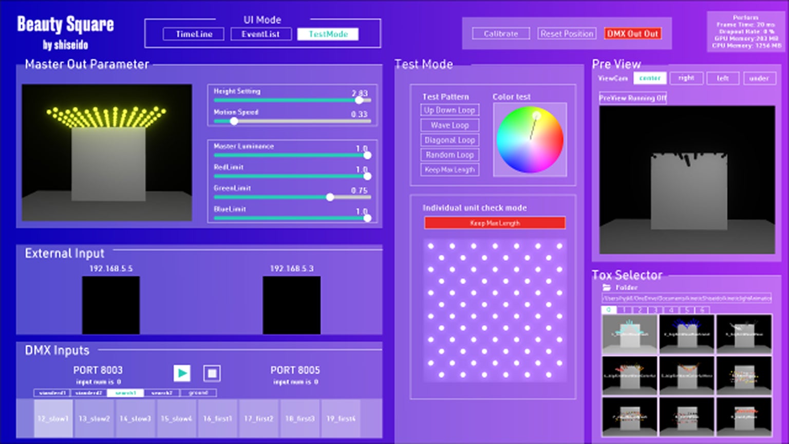 THINK AND SENSEが開発した空間演出に特化したオペレーションツール「Ambience」。来場者自身にLED照明や透過ディスプレイを直感的に操作していただき、実際の現場運用を体験していただきます。