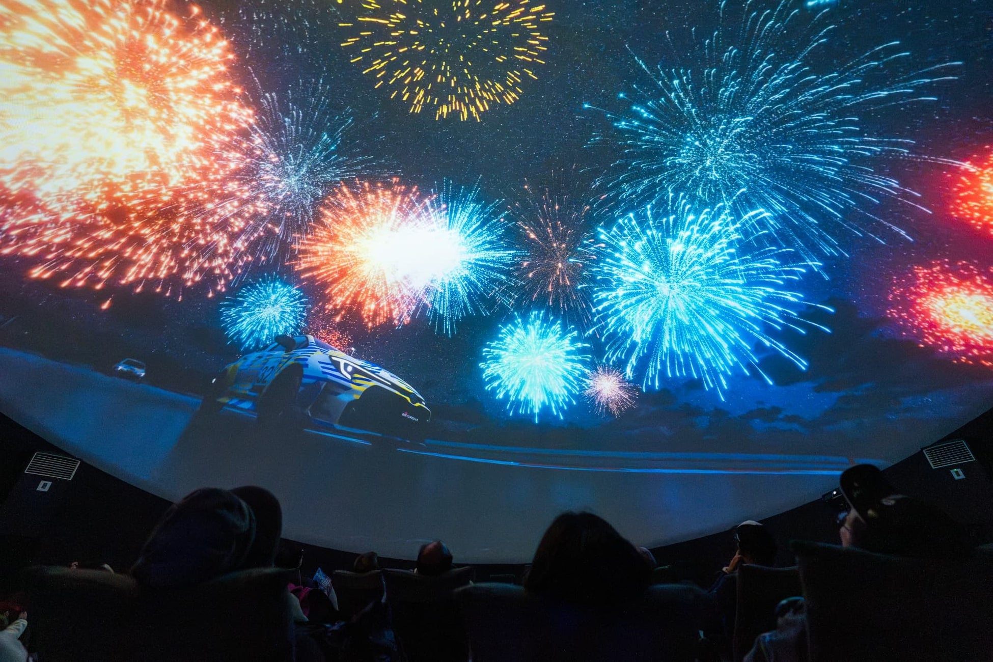 イマーシブコンテンツの制作工程では、制作した映像をVR(仮想現実)シミュレーターに取り込み、本番に近い条件下で見栄えの確認を行う工程が欠かせません。こうしたシミュレーターを用いた検証によって得られたフィードバックは、コンテンツの品質向上やお客様へのご説明に活用されています。本展示では、「スーパー耐久シリーズ2025 第3戦 富士24時間レース」のイベント広場にて出展したイマーシブドームコンテンツ『DIVE into RACING』本編映像の一部を、Apple Vision Proを用いて、没入感とスケール感をそのままにご体験いただけます。