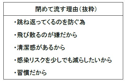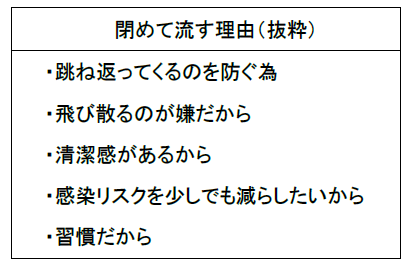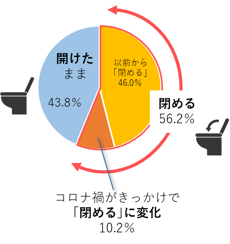 1. トイレを流す時は、フタを「閉めて流す」人が多数派。コロナ禍がきっかけで増加